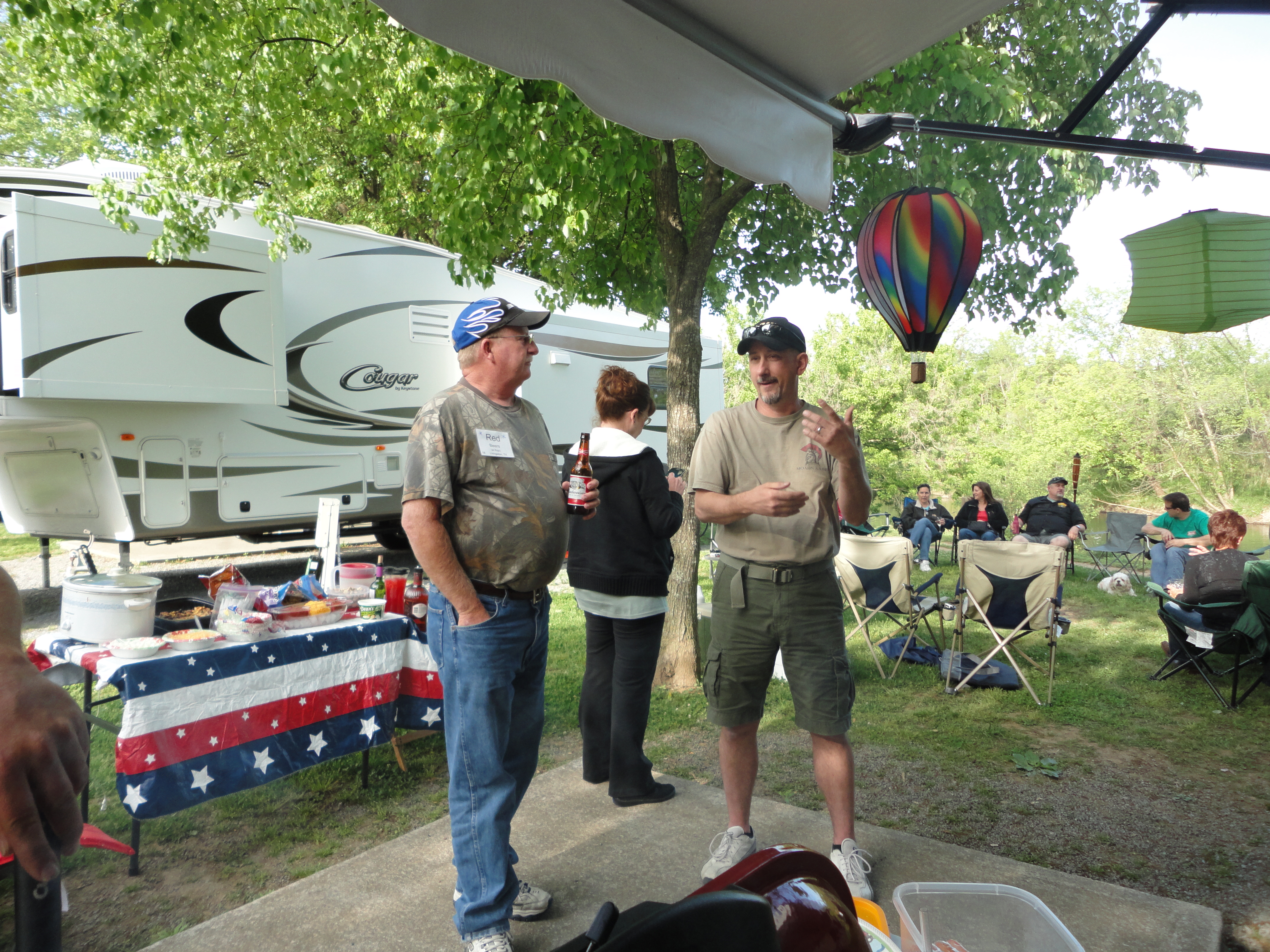 Along with lots of great classes, activities, and just all around fun there has been time to have some great conversations with other newbie couples like us. Kelly and Bill cane one night Greg and Cori over last night and in both cases were talking to past 11pm. For those who don’t know I am an early bird and Lee often conks out on the couch by 9pm, but the great conversation, a little bit of alcohol, and a campfire and I really could have talked well into the night. Even if I I had not learned a single thing (which is definitely NOT the case) the opportunity to meet with other couples has been tremendous. We were having such a good time meeting folks in little groups we invited all the newbie couples back to our place for the free night. Everyone brought whatever leftover food they had lying around (which worked out way better than I expected) and their chairs and whatever they wanted to drink. We gave several tours of the rig and folks really liked some of the features and some of the small customizations Lee has done. Folks stayed from 5:30 to past 10 and we have a really really good time. Tomorrow is internet on the road, boon docking (which I am super interested in) and how to find a campsite which I am VERY interested in…some of the folks doing this longer know the greatest trick for finding these beautiful relatively inexpensive campsites. Here are some great pictures from the party. I made some a pitcher of mai tai’s btw and they were a big hit!! See the recipe below.