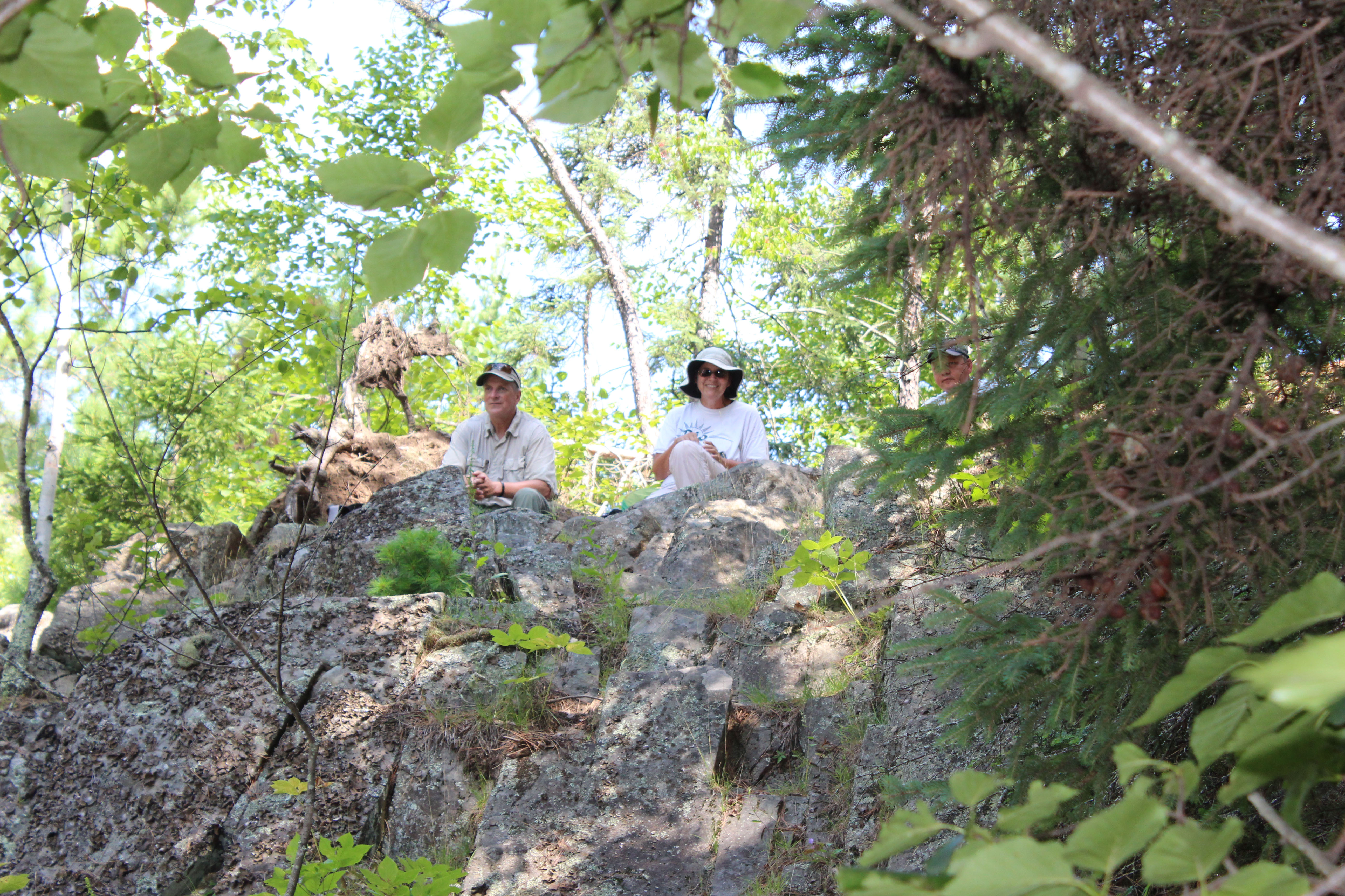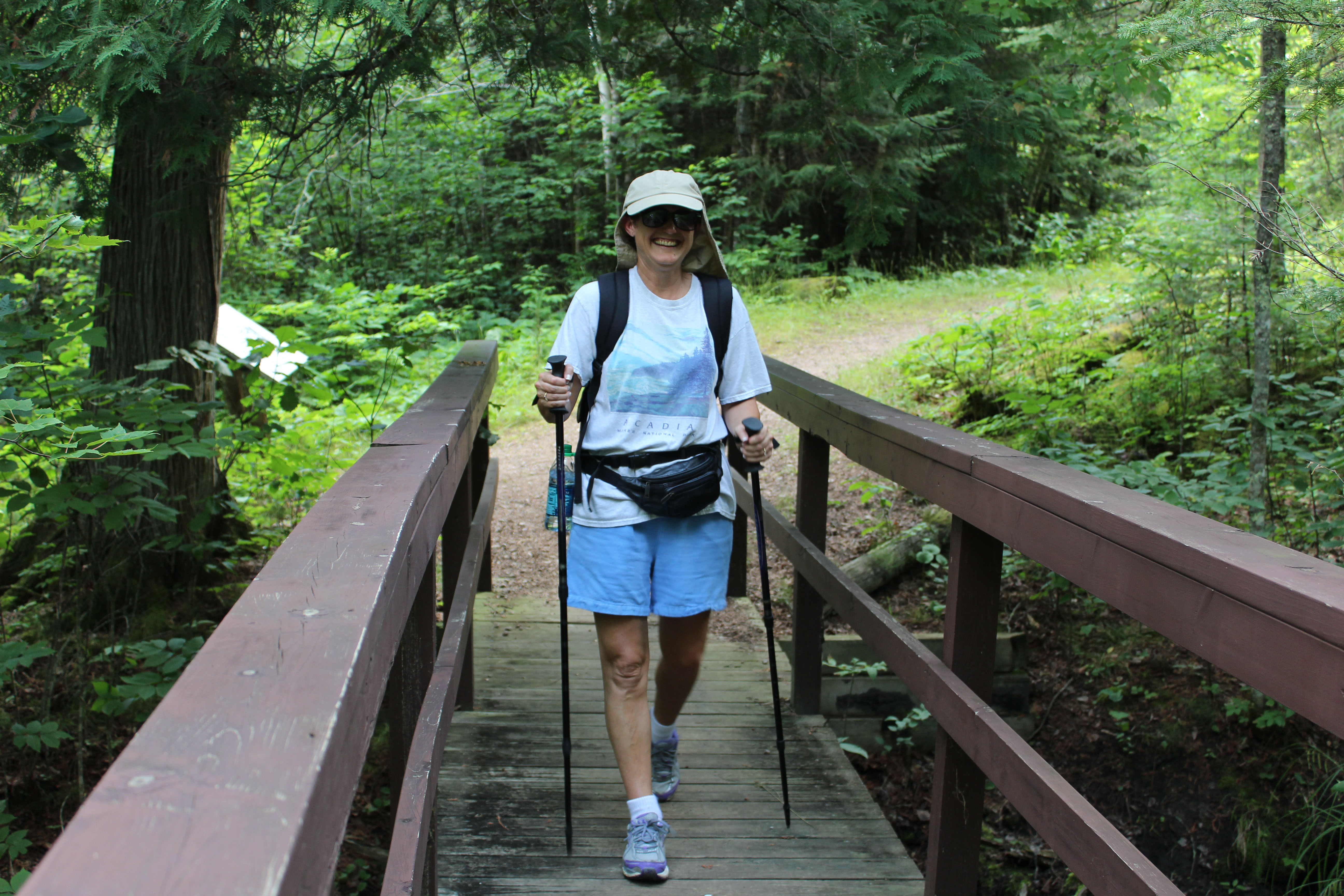 Although Linda and Howard significantly slowed down their pace, it was still pretty brisk for us and the 91 degree heat was not helping. I haven’t sweat that much in a long time, but I was determined to keep up and get the hang of this hiking thing. Early in the hike (when I still had breath to spare) I told Linda how disappointed I was that we hadn’t seen any eagles during our time in Minnesota. She was keeping an eye out though, and stopped and pointed out an eagle across the lake that I would never have seen. I was so excited I forgot about the heat and initial awkwardness of walking with the poles and stood transfixed.