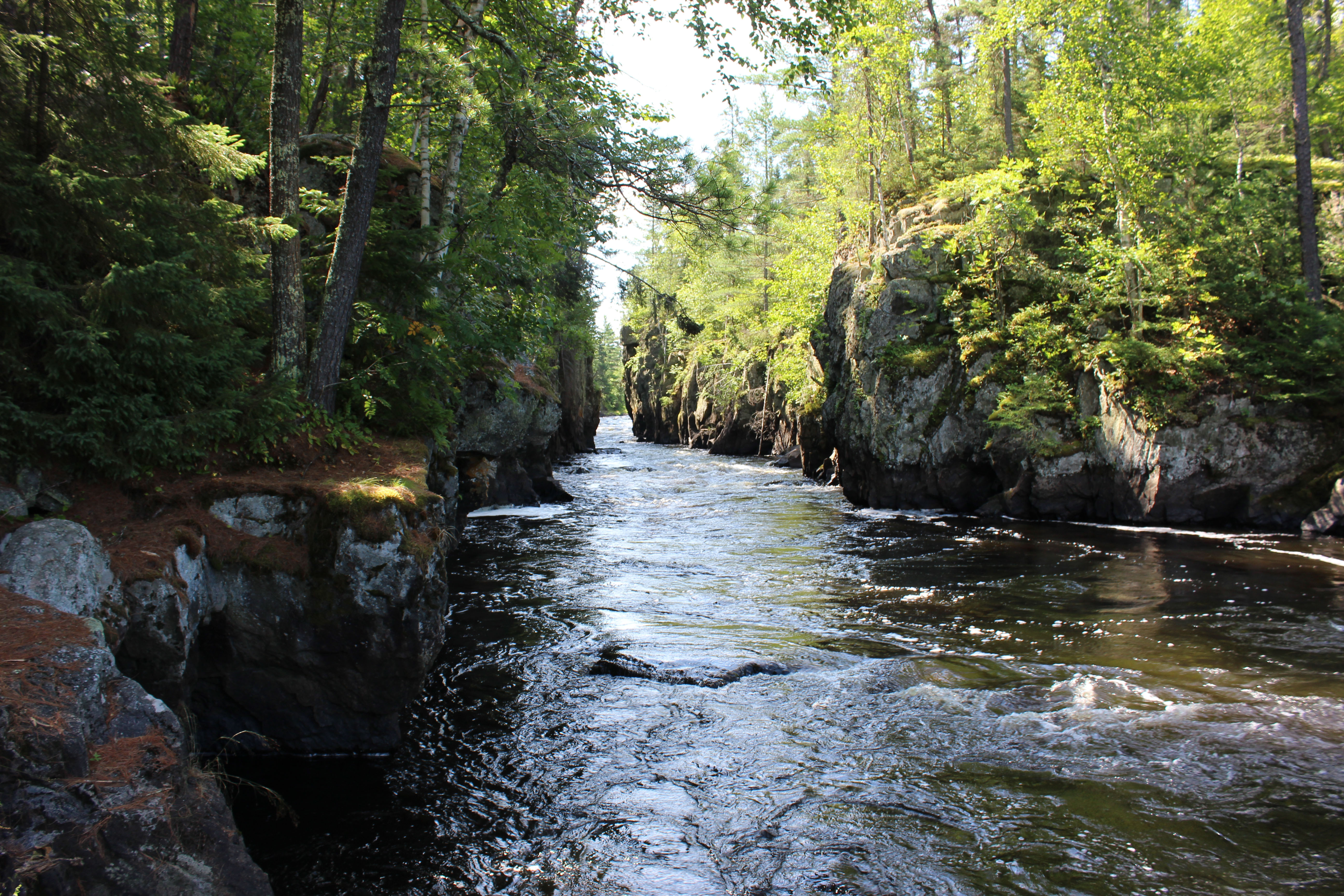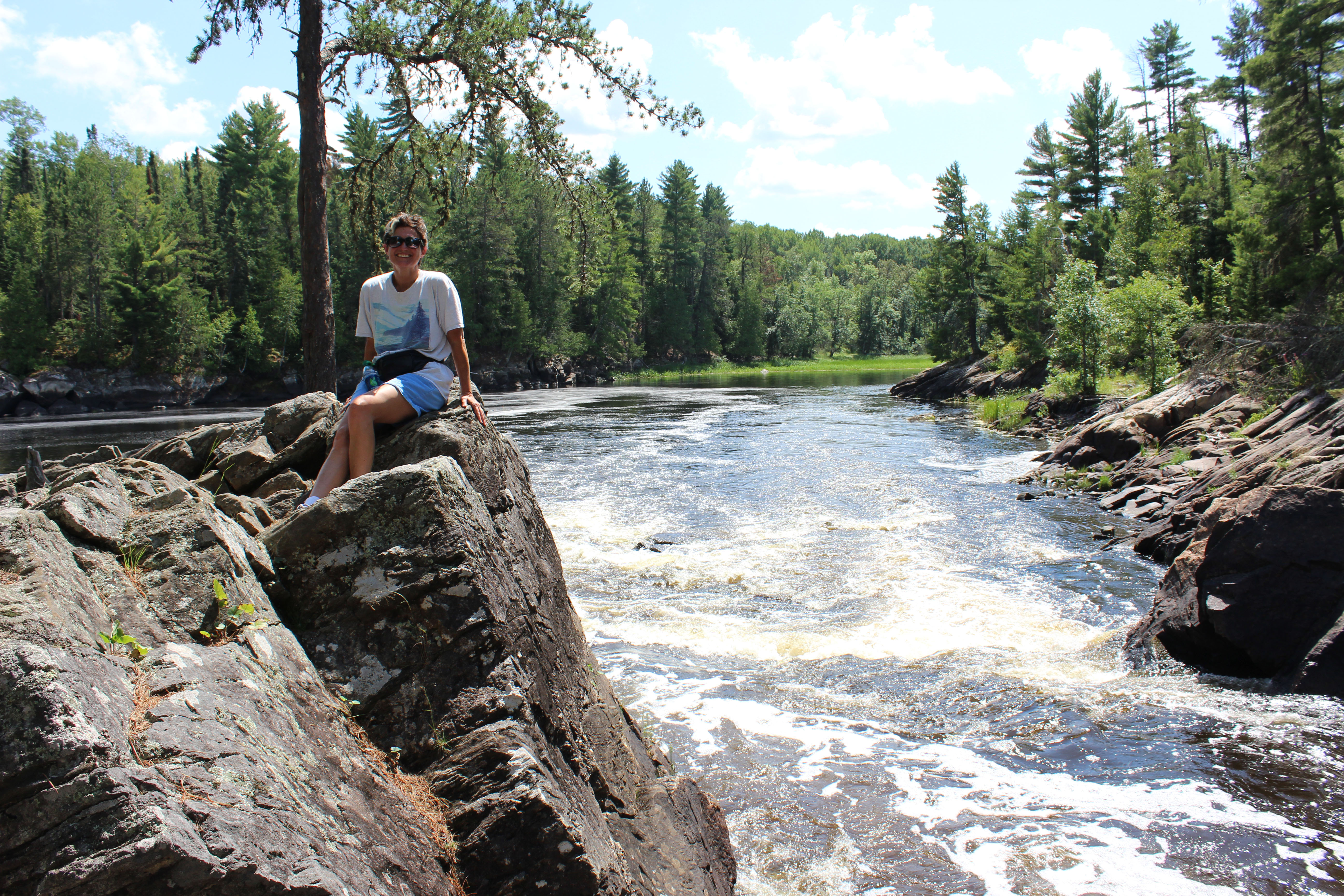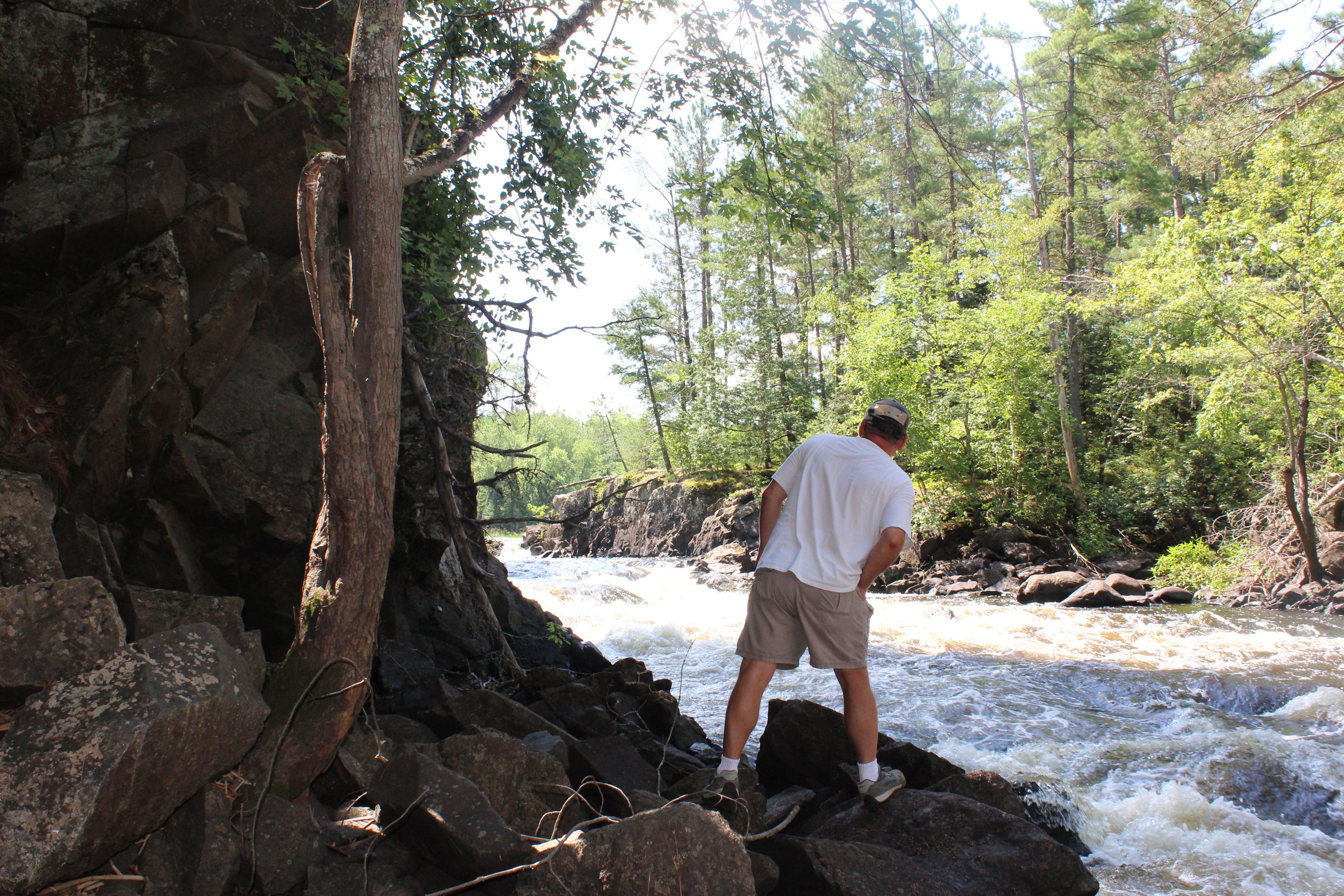 After hanging out for a while we went back and Lee set a very brisk pace. Howard said he was like a cow going back to the barn which would have made me laugh if I had any breath for it. Finally, I cried uncle and asked for a break and then had Lee carry the pack the rest of the way. It was very hot on the way back I was glad when I saw the parking lot but Howard had one more surprise. He asked if I had one more short walk in me, and honestly for a moment I thought “No way!” but when he mentioned a waterfall I perked up. I love waterfalls, plus we got to ride in the air-conditioned truck for 10 miles before getting there, and then it was a very short walk to an amazing view of the Vermillion Falls. What was especially cool was that we had seen The Falls at Vermillion River in Hastings and now we were seeing the falls from the same river to the north. I liked these falls even better than the first though because they had a really neat rock “chute” that water was rushing through. Plus at the end there was, no kidding, one of the best views I have seen since starting this lifestyle. We sat on the rocks and put our feet in the water and I got very emotional for a moment. If nine months ago anyone had told me I would be sitting in that beautiful place and looking at that view with Howard and Linda I would have thought they were crazy. This lifestyle has truly exceeded my wildest expectations and I feel very blessed to be doing this.