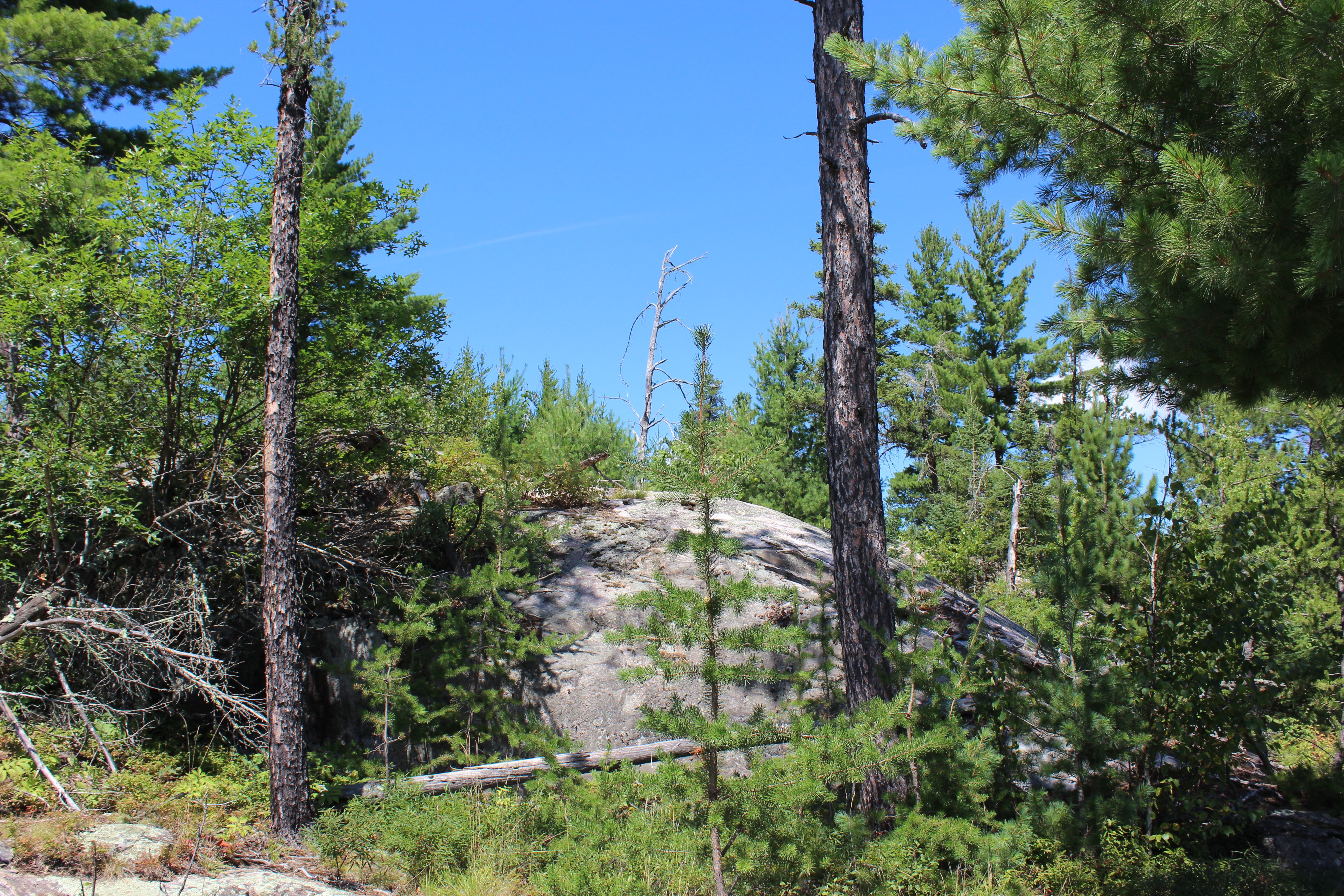 On the way to the visitor’s center we stopped at the Voyageur National Forest Overlook trail. This .5 mile loop is categorized as easy…well not so much. The trail was very narrow, lots of roots, and there is a pretty steep climb halfway in. Plus the “overlook” is a rock where you can stand and see a little bit of forest. Not the grand vista I was picturing. Luckily when we started we bug sprayed because we needed it and brought a bottle of water, because it was hot in there. I’m not sorry we did it, but it definitely occurred to me before we jump into these hikes I probably should do some research. The sign on the trail gave minimal information and we really weren’t prepared if something had gone wrong.