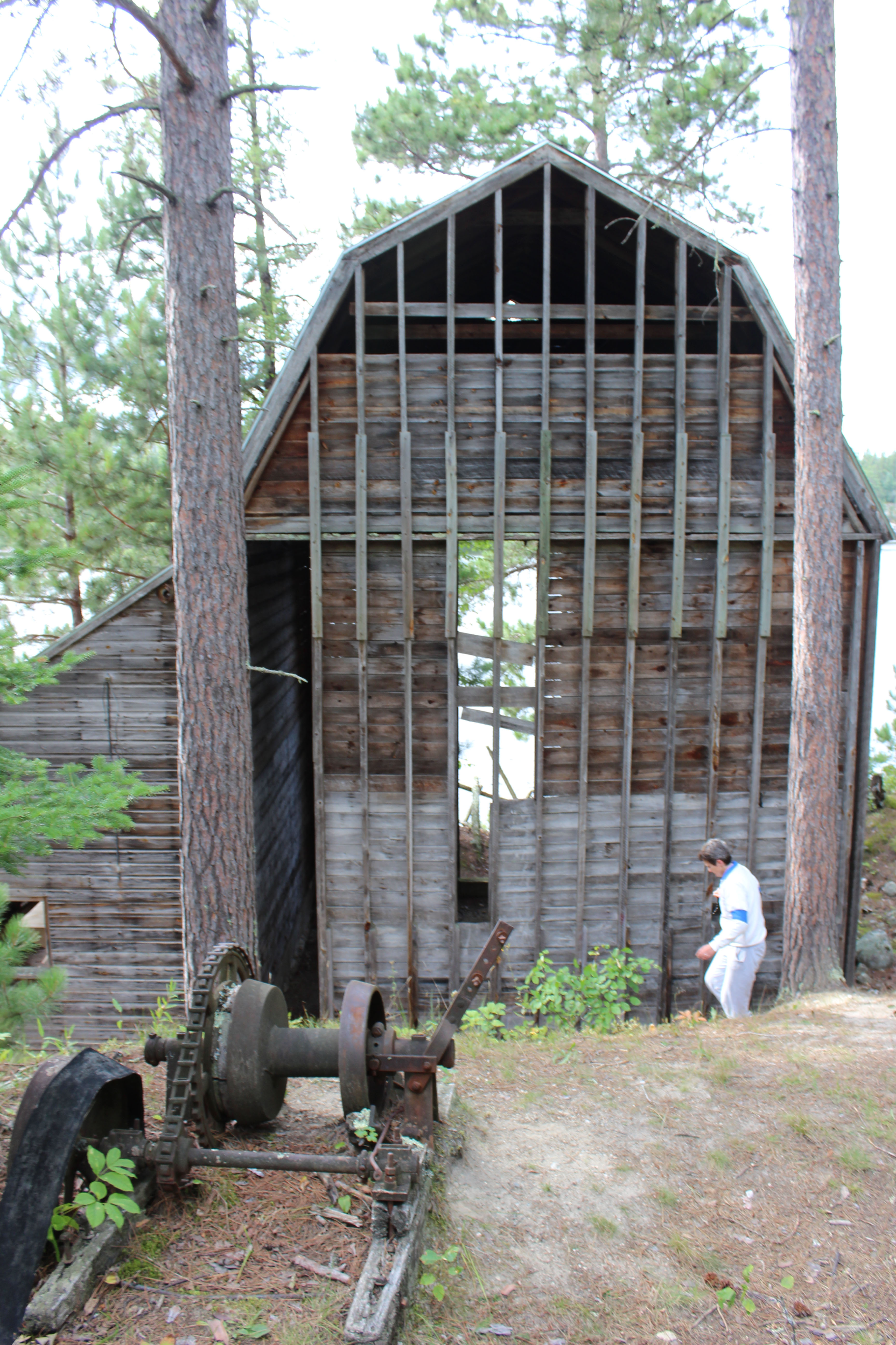 In between eagle sightings, and seriously, how cool is it that it was plural, we stopped and saw a couple of the older island resorts that the park service is maintaining.  There was great information on the people who started the resorts and lived there plus several of the buildings you can walk in and look around. Lee was particularly interested in one of the old ice houses and the machinery used to pull the ice blocks out of the lake.