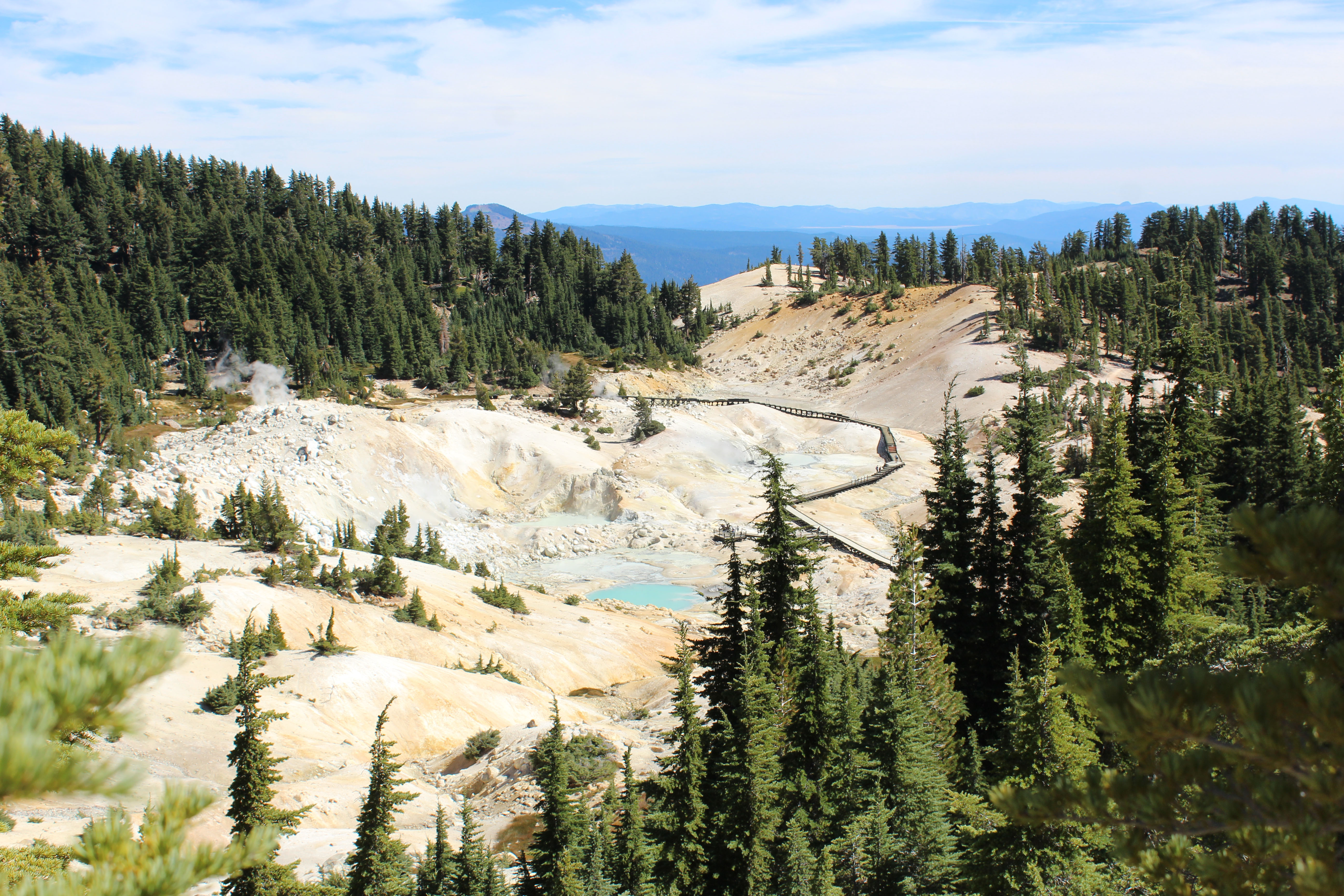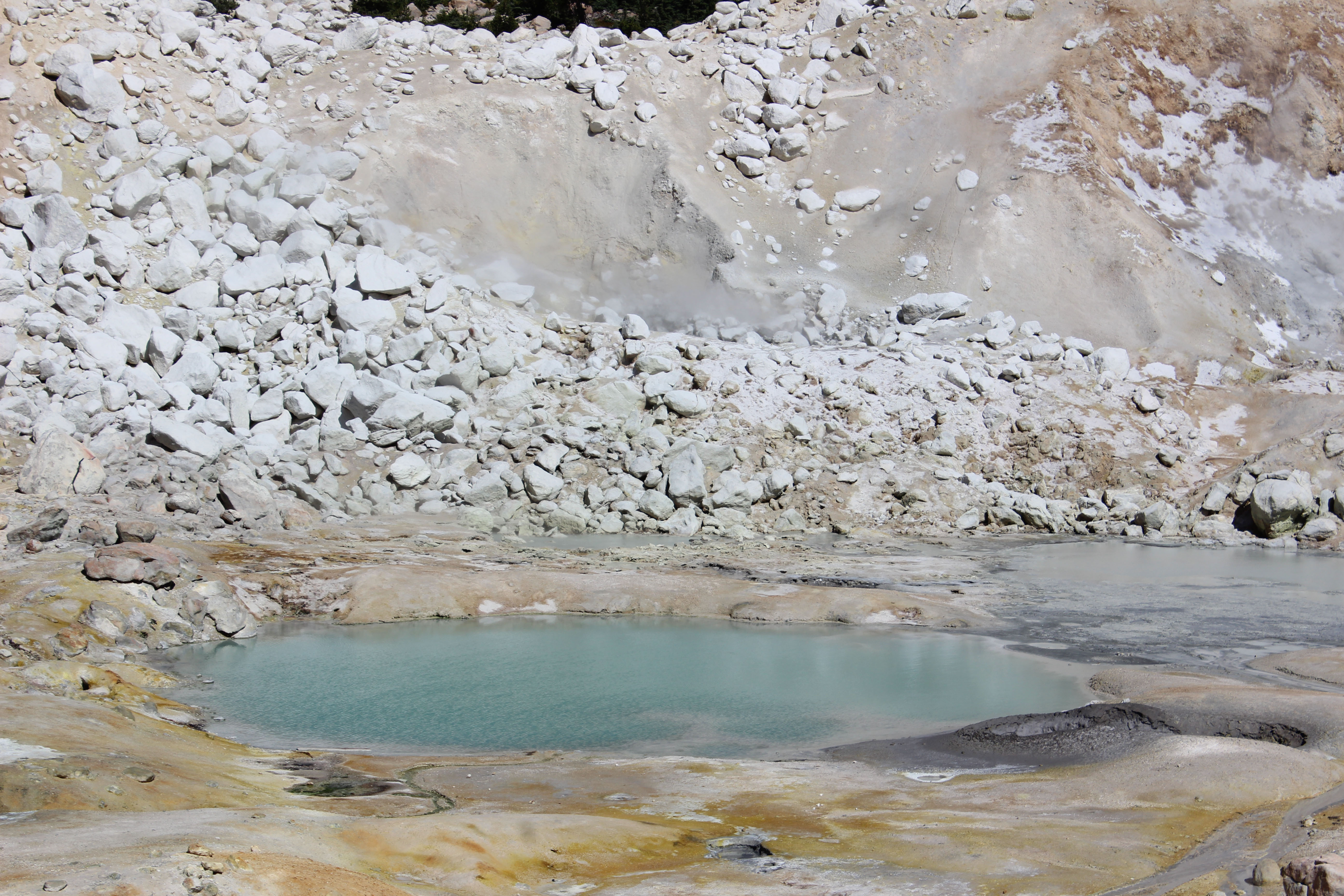 Bumpass Hell named for the explorer who discovered it, was going to turn it into a tourist attraction, and then lost his leg when it fell through the crust into the steaming hot mud