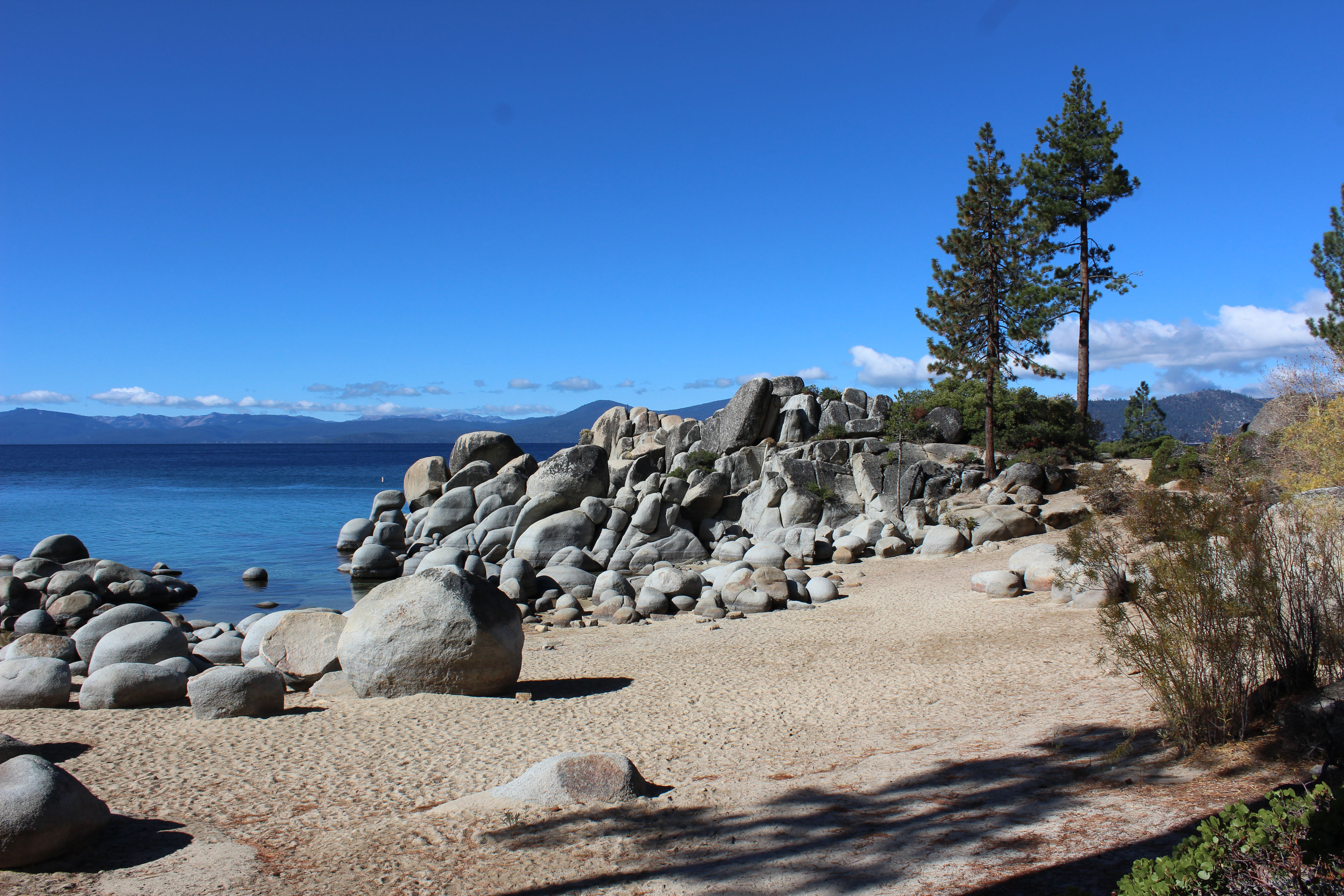 Thankfully the sun came out on Thursday and we could finally make our trip to Tahoe. We have been wanting to go since we got here, but one thing or another kept getting in the way. Lee worked there years ago and has always wanted to show me and I of course wanted to see it. We were just getting ready to leave when Lee got a phone call from the claims adjuster. It turns out a brand new engine is actually cheaper than a used one so amazingly we are getting a new engine and only have to pay our $1,000 deductible. I have never been so happy to pay $1,000 in my life. And, wow, did I feel a weight lifted from me. Feelings about the job have been all mixed up with worry about the truck, and I had no idea how much that was getting to me until we got the good news. So feeling 100 times lighter we jumped in the rental and headed to Tahoe.