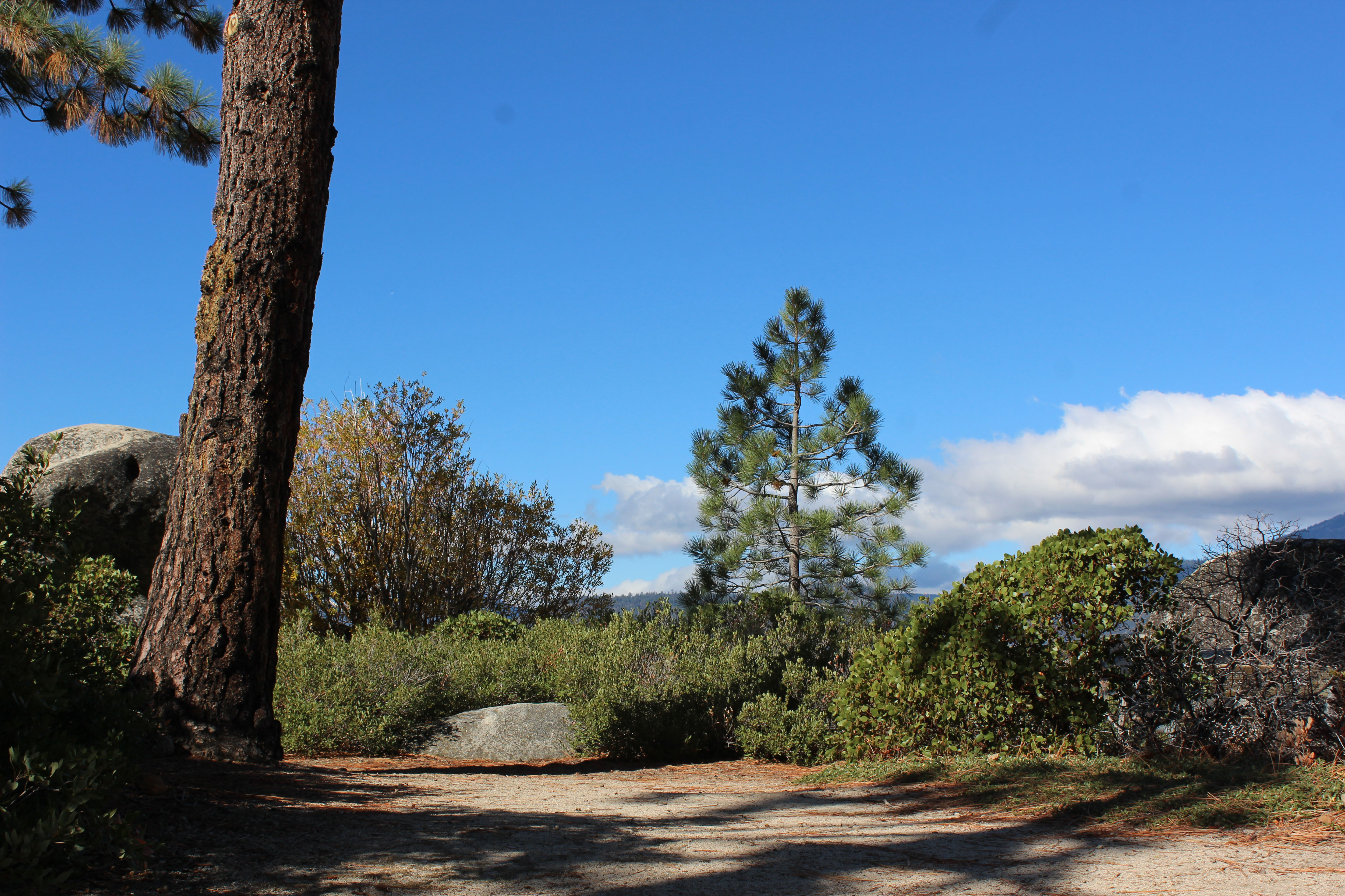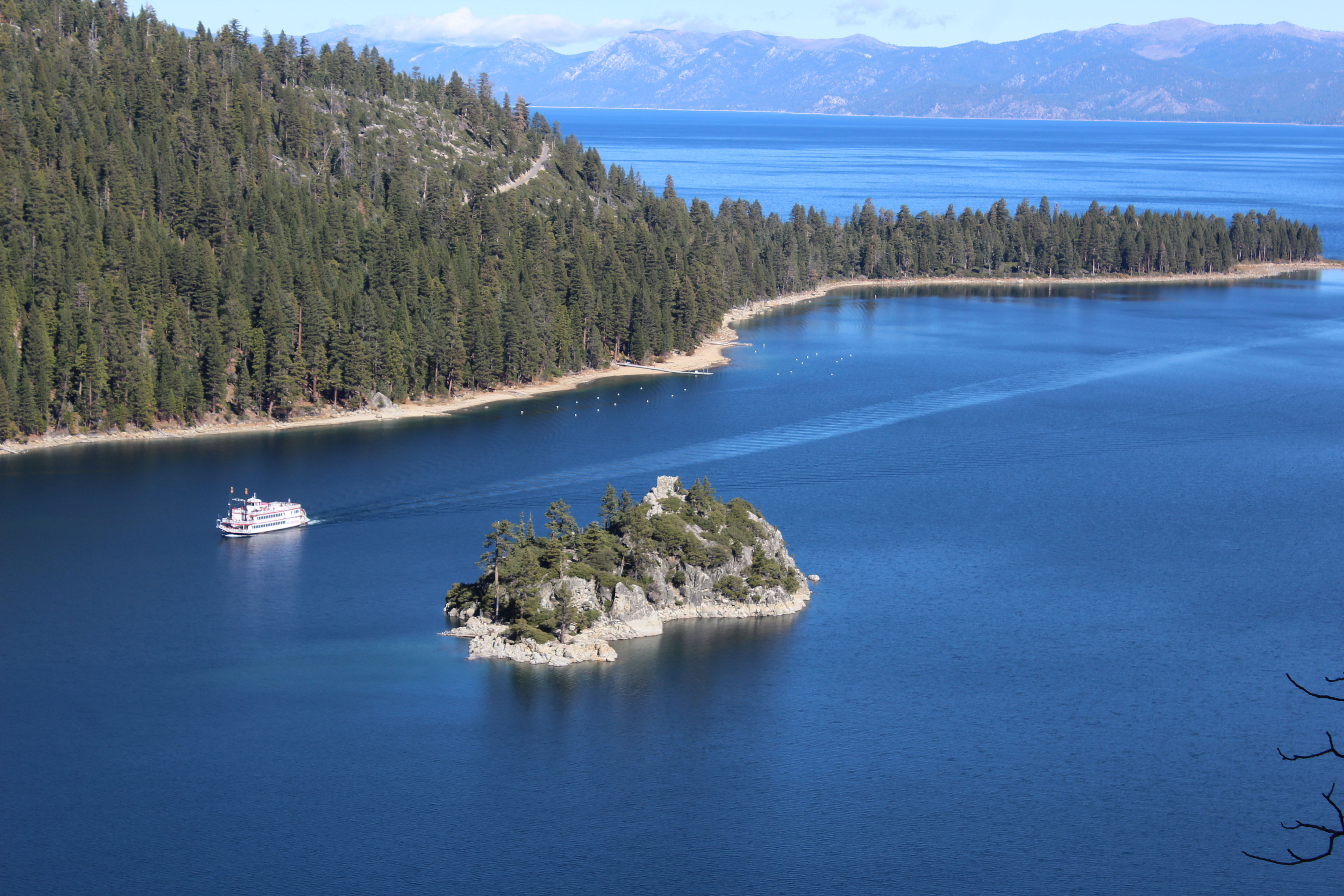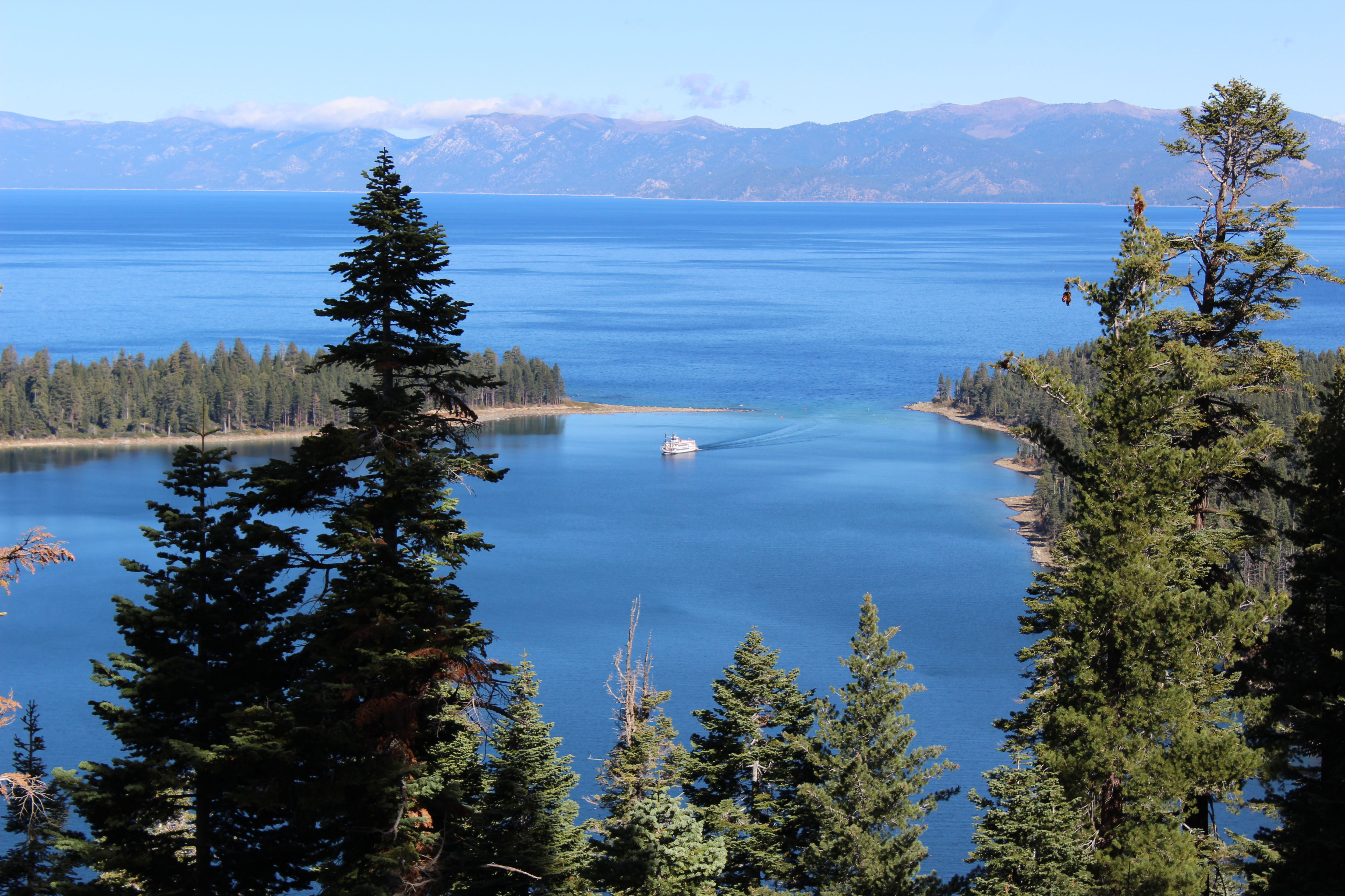 After Sand Harbor we kept driving, stopping at several beautiful scenic spots along the way. Part of the lake is in California and the other part is in Nevada and whole sections of it are National Park. What I particularly loved was that it was beautiful on both the lake side and the hills side. It was the kind of place where you couldn’t take a bad picture and everywhere you looked was just beautiful. When we hit Inspiration Point though that was something special. As a general rule, you always know when something is worth seeing when there are lots of people speaking in foreign languages. My only complaint was the bathrooms were an absolute mess. As someone who has been responsible for public land bathrooms I was a bit horrified, but besides that the view was spectacular. Plus, the lone paddleboat on the water came into view right when we were there and I was thrilled to get a shot with the boat.