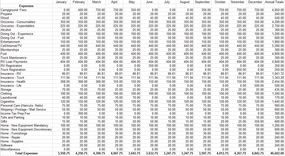 So we are still looking at $46K next year and that is assuming very low health care costs. That number is not so scary though if you look at it a couple of ways. Lee and I are both able bodied, so we would just need to bring in $23K each to make that worth.  Plus, this is in no way a bare bones budget.  There are several areas where we could trim the fat, the question becomes do we want to?  There is a tipping point between working so much you don’t enjoy your life and not having enough money to have a quality life.  Where that point is every individual person needs to decide, and it could change over time.  What I thought was an absolute requirement a year ago, is different than how I feel now and I expect next year I might feel differently again.  I do know that I will keep talking about it in the blog next year.  I will keep reporting our expenses, talking honestly about what the life looks like for us on a budget, and let you know what is working and what is not.  That is what Howard from RV-Dreams did for me and ultimately his honesty gave me the courage to try this lifestyle.  The least I can do is pay it forward a little bit, but please please remember: your mileage will vary.  This is our truth, and yours will ultimately be what you make of it.