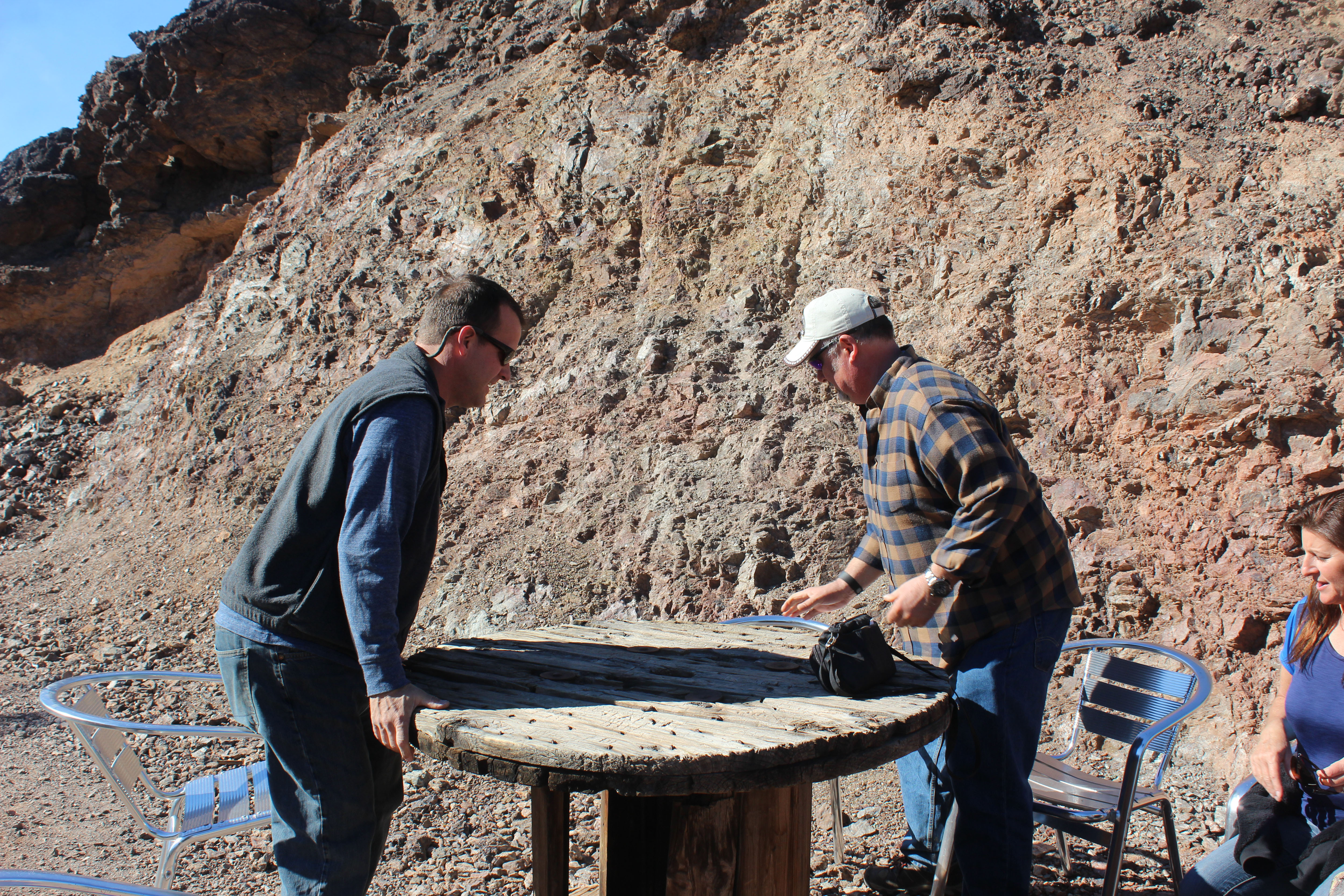 We snagged one of the last tables, ate some lunch, and then Deb wanted to hike up on this little hill to get a better view. The gravel/rock is very loose, but Cori (who sprained her ankle on a hike a few weeks ago) wanted to give it a go. So Deb, Steve, Cori, and I hiked up while Greg watched the table and our stuff. The panoramic was very pretty and you got a good view of the owner’s house which is on the property. It’s such an odd place to put a bar, in such an isolated place, but you can’t argue with success because the place got busier and busier as the afternoon wore on.