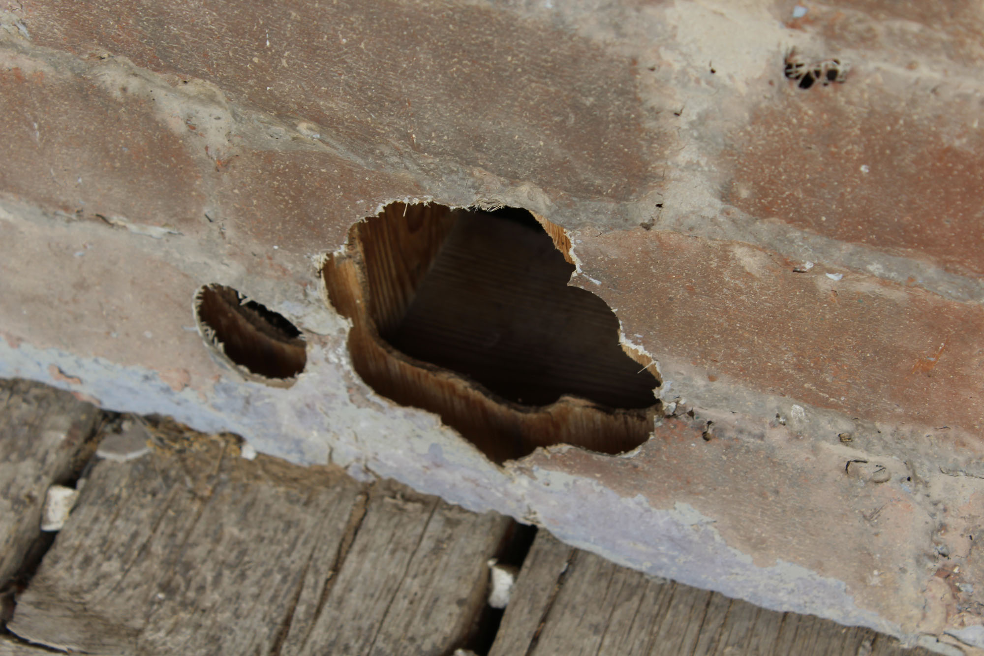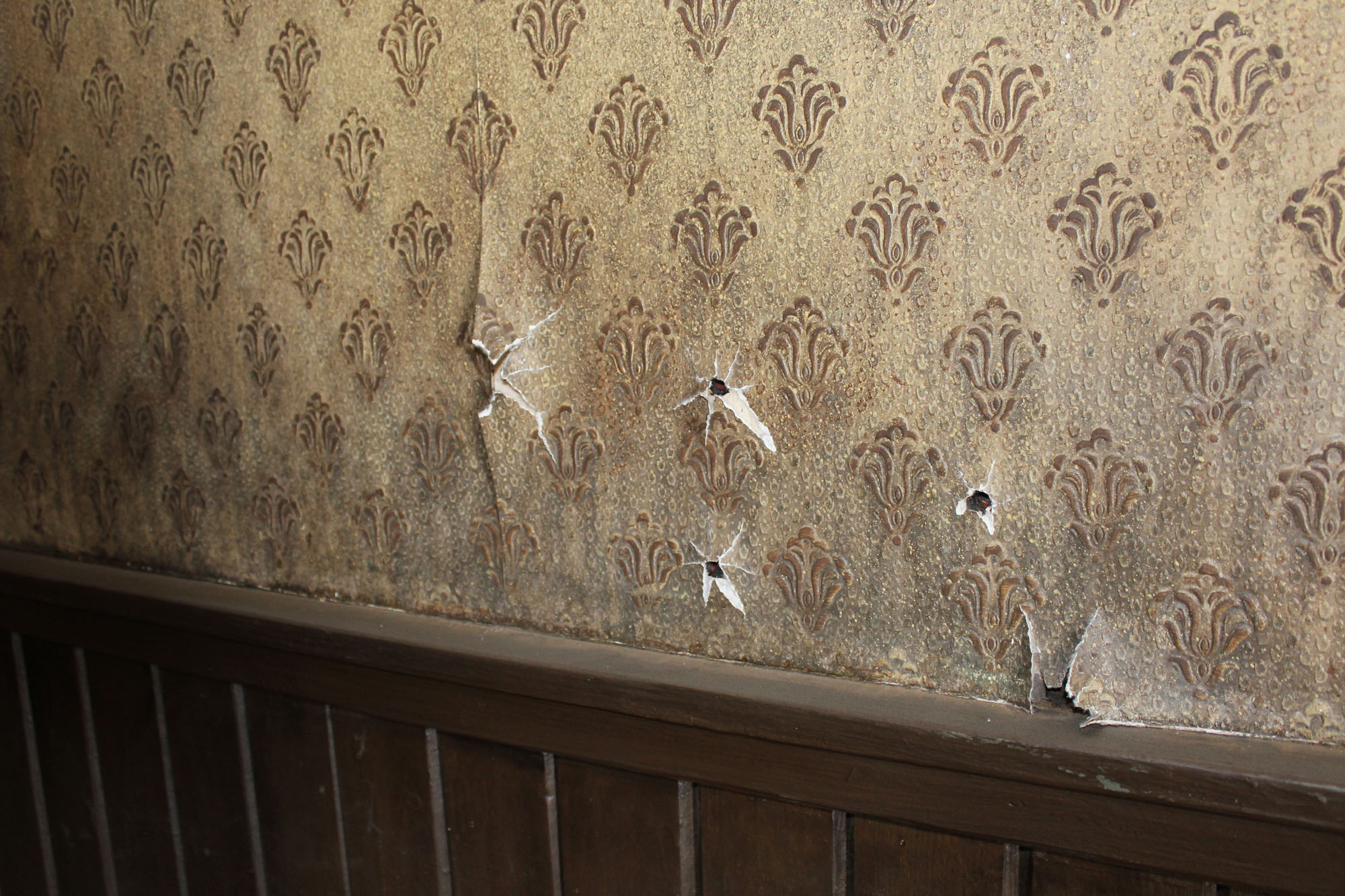 One movie brought in a ballistics expert and shot real bullet holes in this wall which they have left