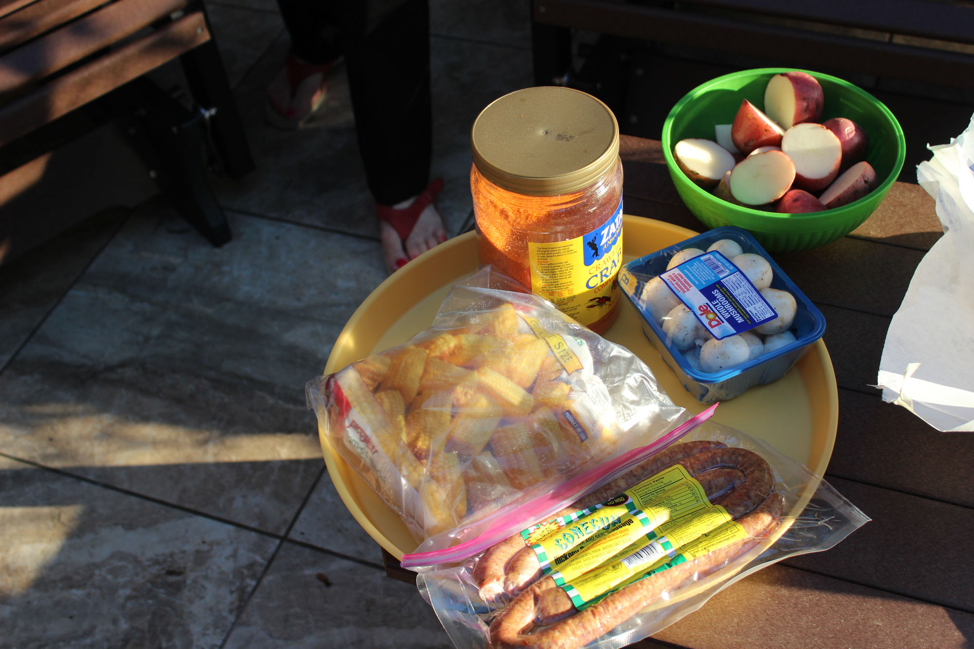 So here are my thoughts on my very first crawfish boil. The veggies were spicy, although you can control that with what you put into the boil, the meat on the crawfish was sweet (sort of a cross between lobster and crab) and tasted great but it’s some work getting to it. Of course Bridget and Pat were much faster at it than I was, so that would probably improve over time. Most of all it was totally fun. You only eat the tail part and the head gets thrown away (or used later for gravy) so the grossness factor was much less than I expected. Plus it is a true Louisiana experience and a must try at least once for everyone. Oh and they used Zatarain’s Boil mix for seasoning and Bridget’s Go To Cajun seasoning for almost everything else is Slap Yo Momma
