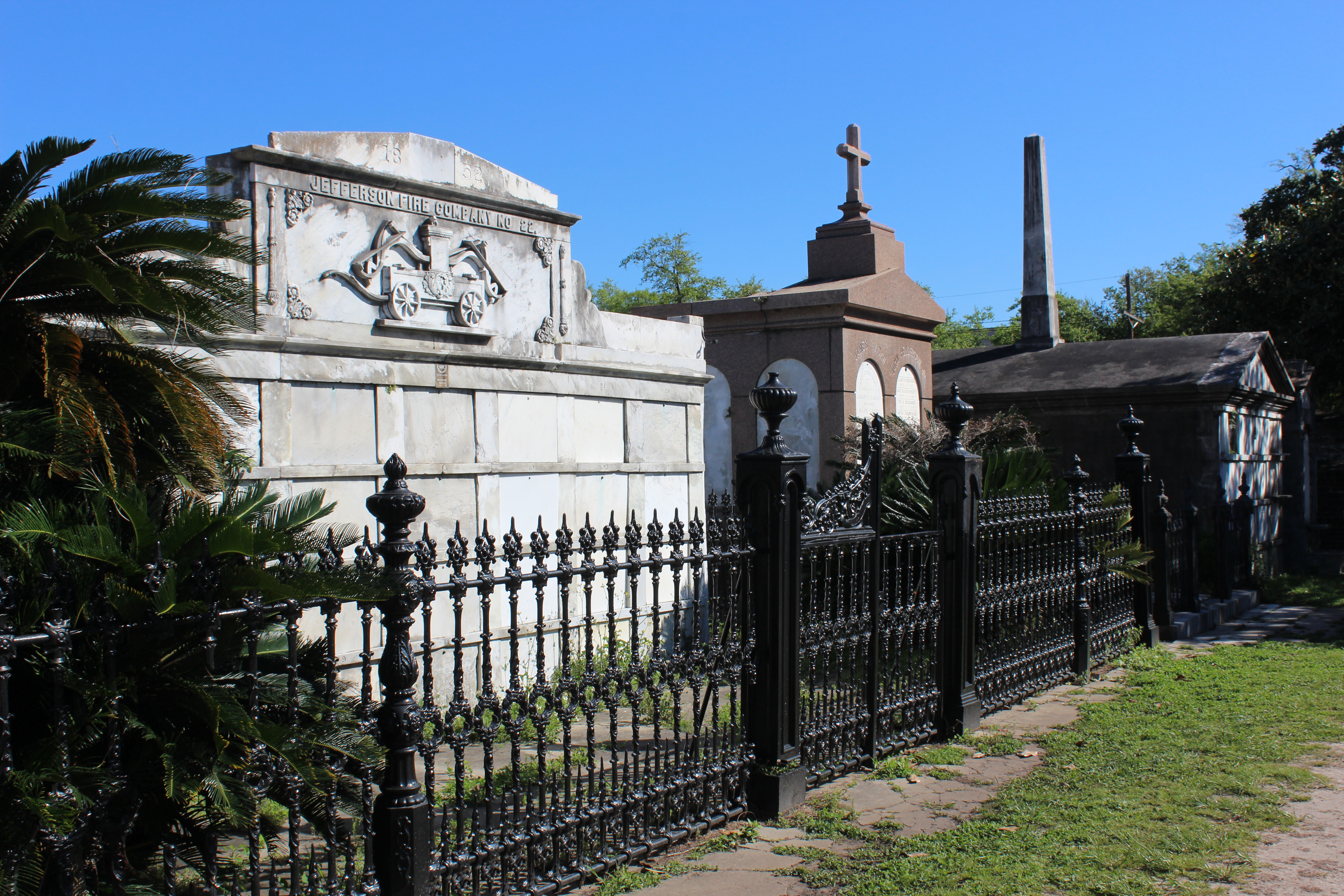 We wanted to start at the Garden District rather than just hit Bourbon street, because I wanted to see the area Anne Rice had written about. We have visited many places our favorite writers used as backdrops over the years, Bangor, ME (Stephen King), Prince Edward Islands (Anne of Green Gables series), and more recently Charleston, SC (Pat Conroy) and it rarely disappoints. A good writer can really make you feel like you know a place already and I felt like I knew the Garden district through her writing. Since Anne Rice writes about vampires, the very first thing I wanted to see was one of the old cemeteries. I wasn’t particular about which one, and with sheer dumb luck we ended up parked on the street right next to Lafayette Cemetery Number 1 right outside the garden district. We have visited numerous graveyards during our travels, but I have never felt as unsettled in one as I did in New Orleans. They are extremely old, above ground, and the walls surrounding them have bodies in them as well. Let me just say I am glad we weren’t there at night. Everyone should see them at least once, but we didn’t linger.