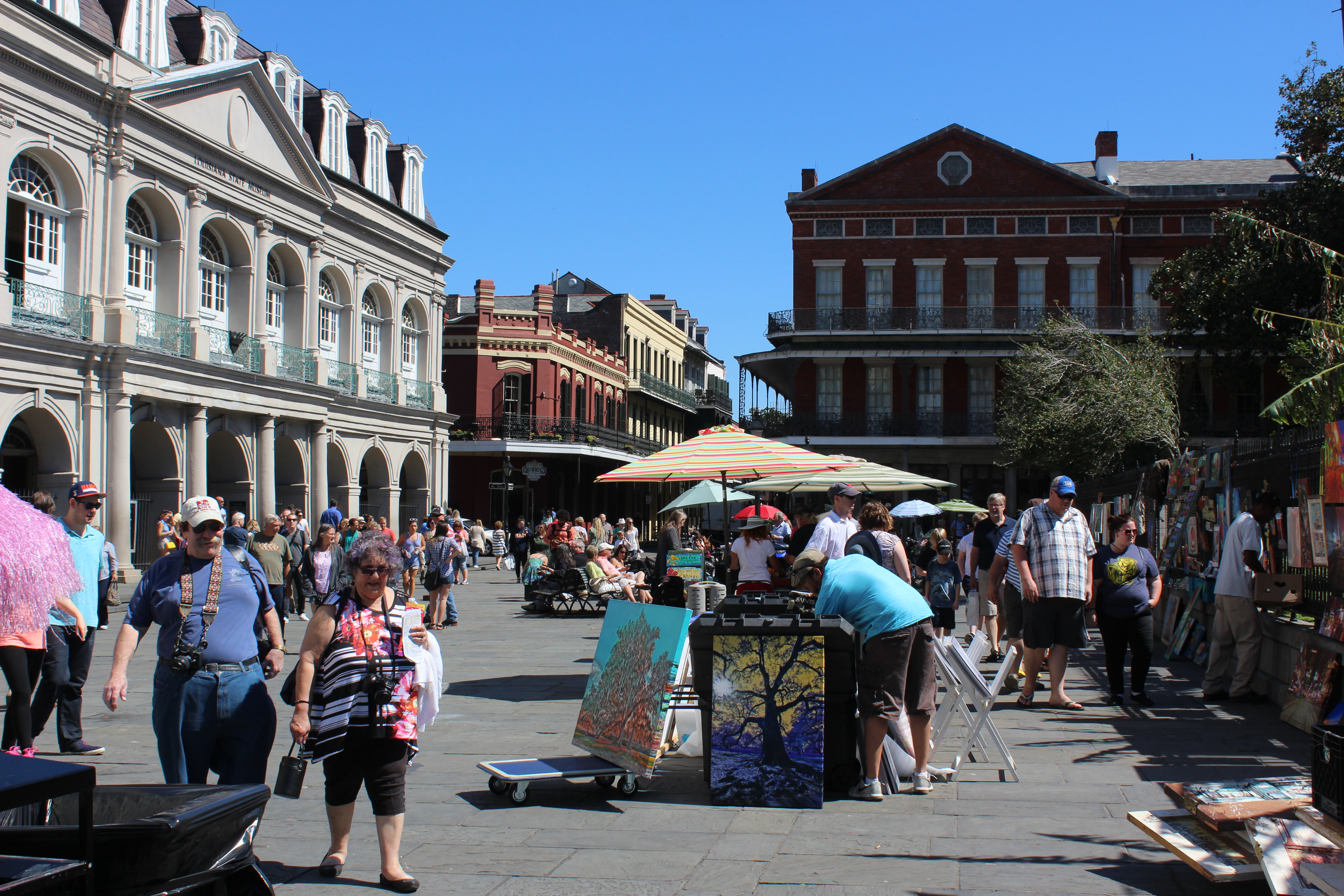 Jackson Square itself was great though. Tons of street artists, a beautiful catholic church which you could go into, and lots of shops and restaurants. We liked it early in the day, but when we returned later in the day it was uncomfortably packed with people. Cruise ships are landing in New Orleans now and we saw lots of big tour groups along with so many visitors for a Monday! Still I thought it was neat and liked the vibe.