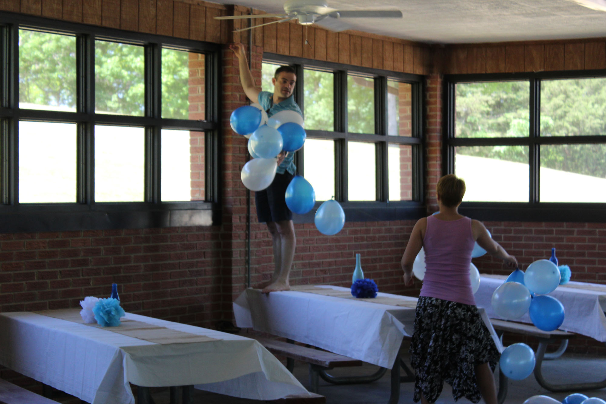 We had a great few days prior to the party and then party day we all gathered together and helped put it together. One thing I love about my family is they all pull together when there is work to be done and everyone pitched in. My brother was an absolute rock star running all those last minute errands that always arise and Kyrston and her boyfriend Jeremy came up from Charleston and were super helpful. You may remember Jeremy was my mental lifesaver during Katy’s wedding and once again he jumped in to help. The poor guy… every time we see him we are putting him to work. I am really looking forward to next week in Charleston where we can just hang out with him and Kyrston. The weather was beautiful and the lake venue my sister rented was great and it was really nice to all be together, especially since we wont be seeing them all for awhile.