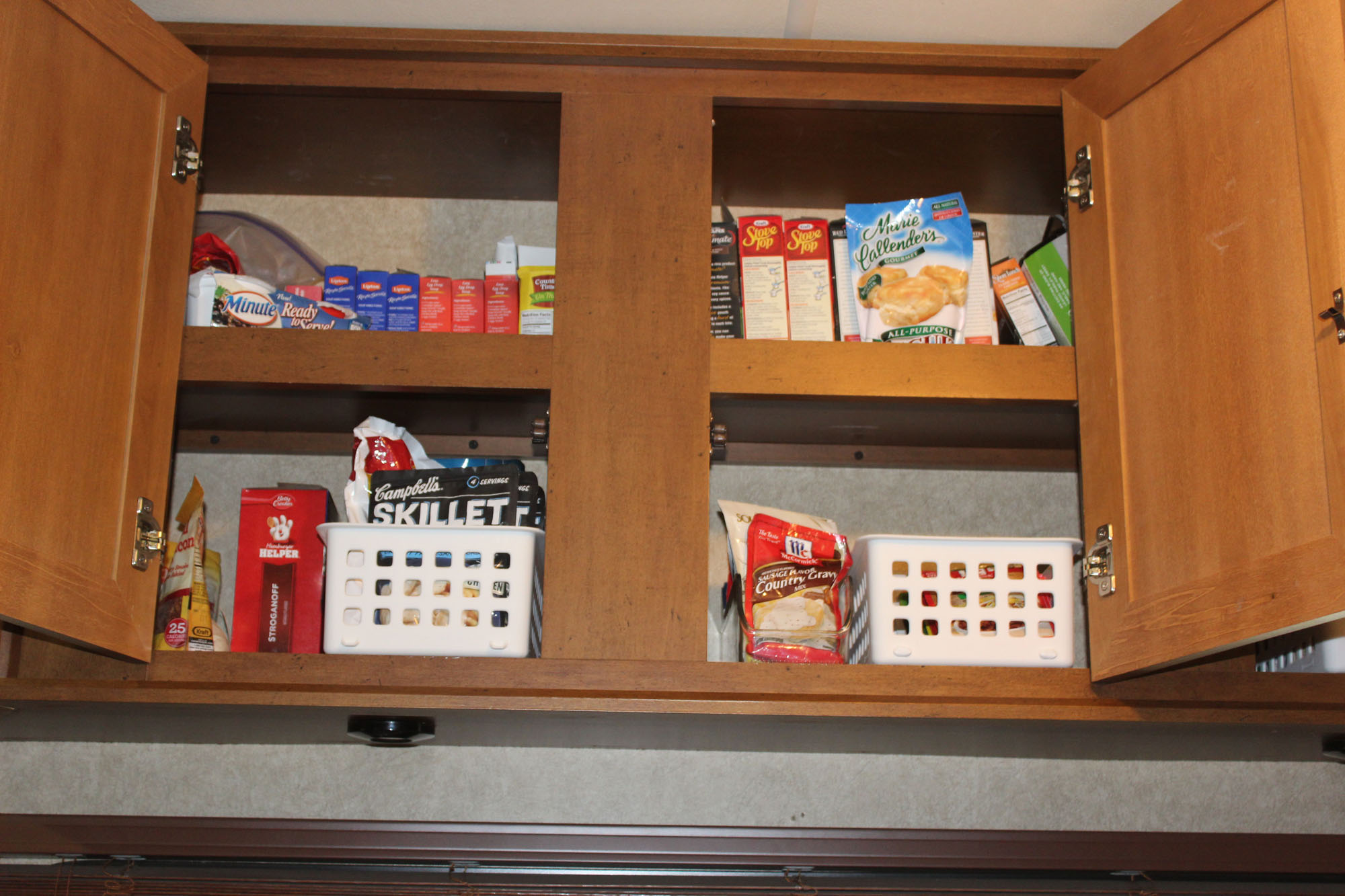 After getting the parts ordered, Lee and I decided to make lemonade and complete a big purge. Really you should purge every 6 months, especially in the first couple of years and we were going to do it in Quartzsite but things kept getting in the way. You’ve seen our schedule since then, things have been busy and we are way overdo. So we went room by room, cabinet by cabinet and went through everything. Lee set a “no value judgement” rule which worked beautifully. If either one of us wanted to keep something it stayed…no judgement, and in the end we ended up throwing away 4 bags of “trash” and setting aside 4 big bags of stuff for our daughter Kyrston to go through. Whatever she doesn’t want we will pitch. The thing I am most excited about is the reorganizing we did at the same time. Using the principle of keeping the most used items closest to hand, we not only freed up tons of space, but more importantly put commonly used items in an easy to reach space. And wow do I have so much more room. It was a long day and we were both tired at the end of it, but what a great feeling. We’ve lived in the rig long enough to know what our “problem areas” are and paid particular attention to reorganizing those. Overall it wasn’t that bad…I think we have done of good job, but we did have some weird stuff we have been holding onto that we were finally OK of letting go of.