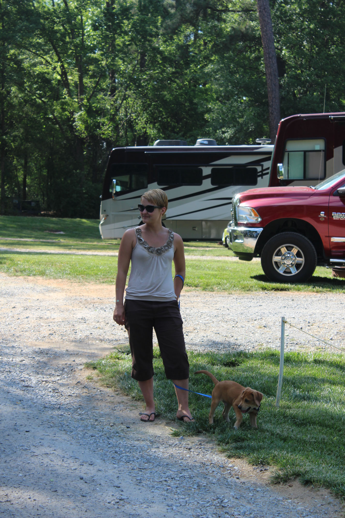 The good news is that while we were sitting around waiting for parts to come in and quotes Lee finished our DIY RV Projects (Inside) page. He has outside projects about 75% done, and we will post that when finished (the ladder box is taking a while to explain). But I was excited. Been trying to get that done for over a year and he spent 12 hours in total working on them for me. Plus Thursday Kyrston and Jeremy made the 3 hour drive up from Charleston (they arrived about 20 minutes after the tech showed up) and brought their new puppy Finnegan! Puppies make everything better and it was so wonderful to get to spend some time with them. Lee made a huge steak dinner and we played with the puppy (who is super fun and mellow) most of the day. Plus the repairs went great. The tech was finished in about 4 hours and after seeing the difference in the quality of new and old parts both Lee and I felt better about the whole thing. Yes it sucked that it happened at all, but when you believe things happen for a reason (as I do), that includes both good and bad.
