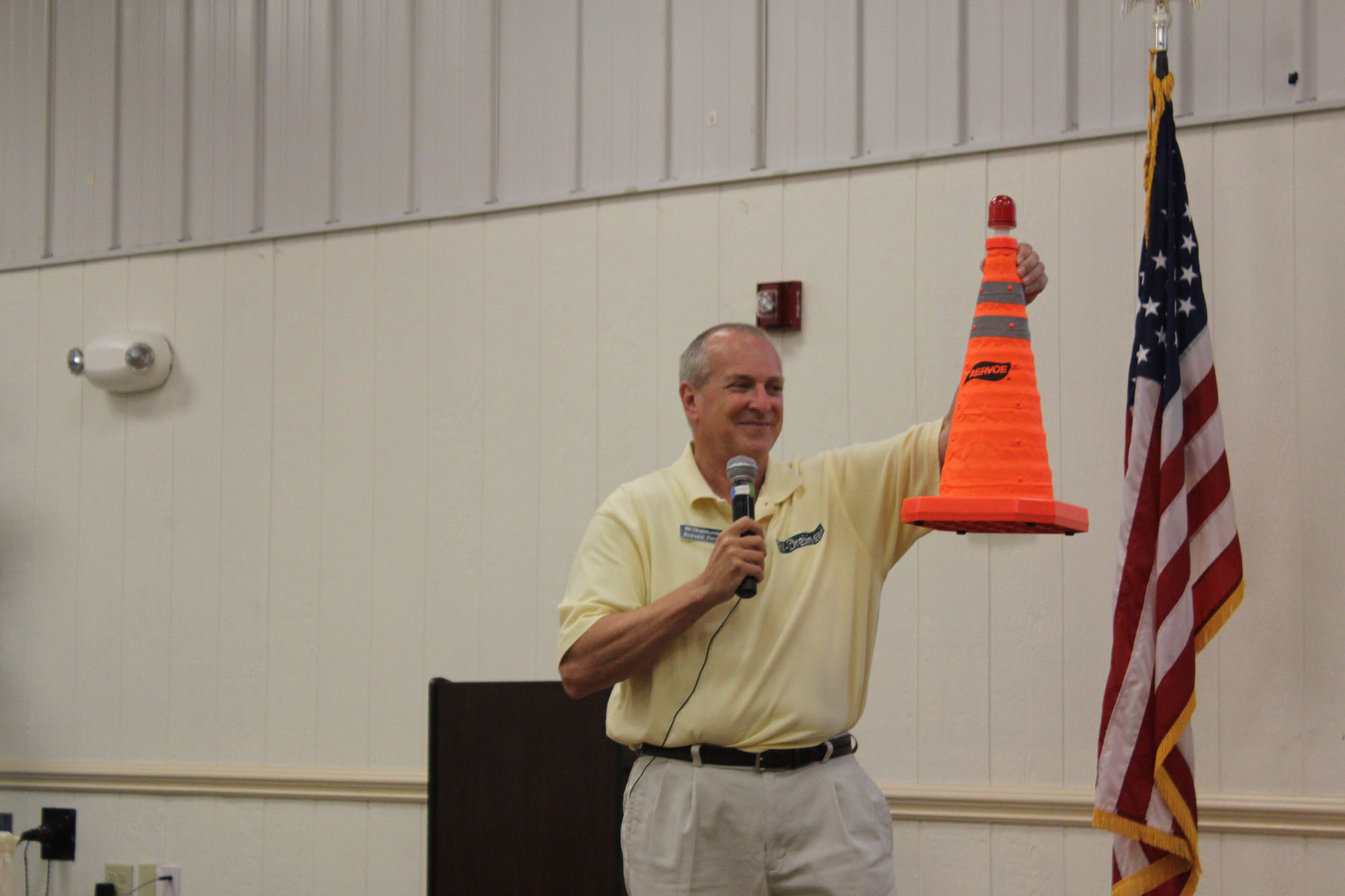 Howard showing off their light able emergency cones
