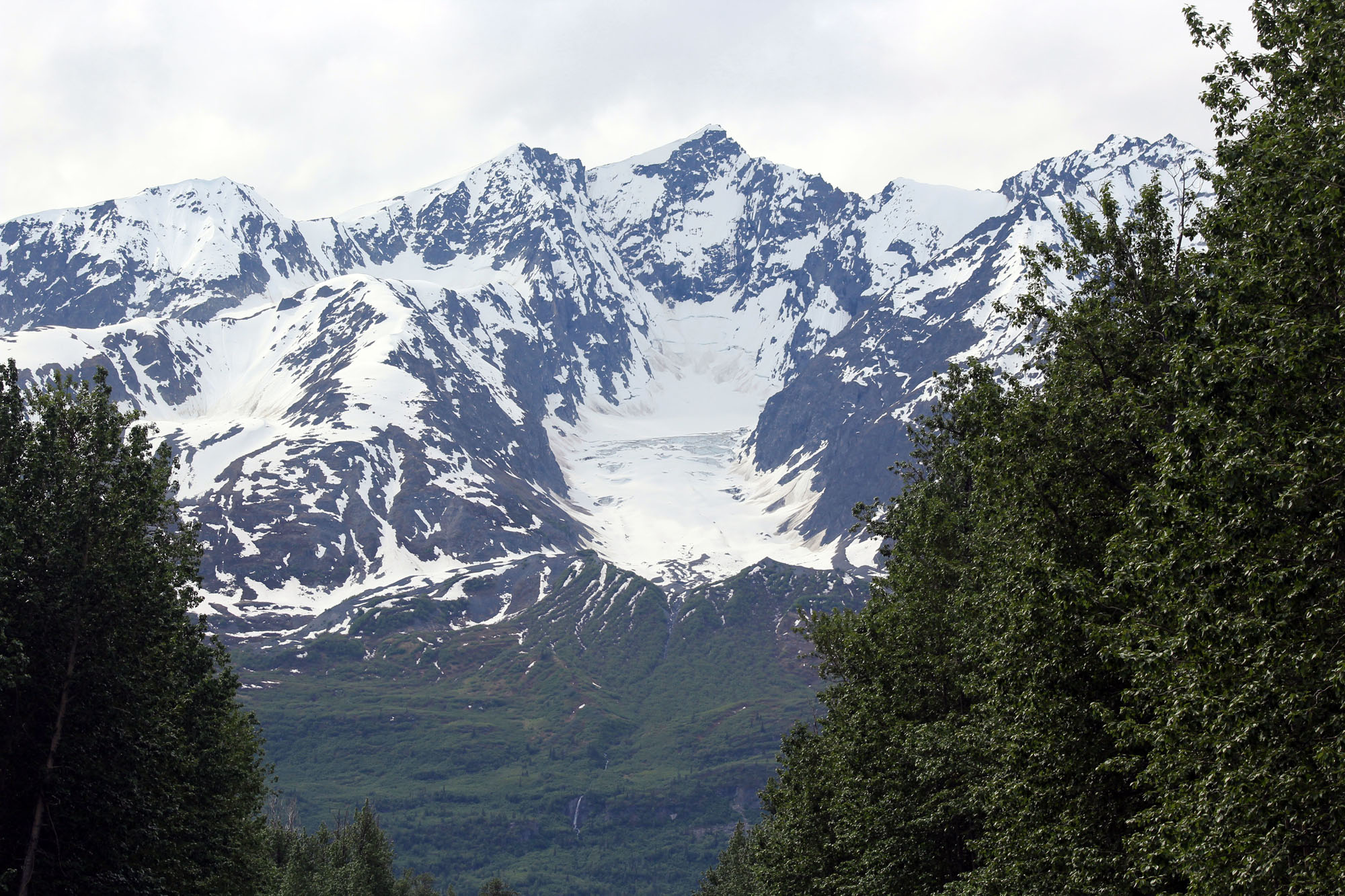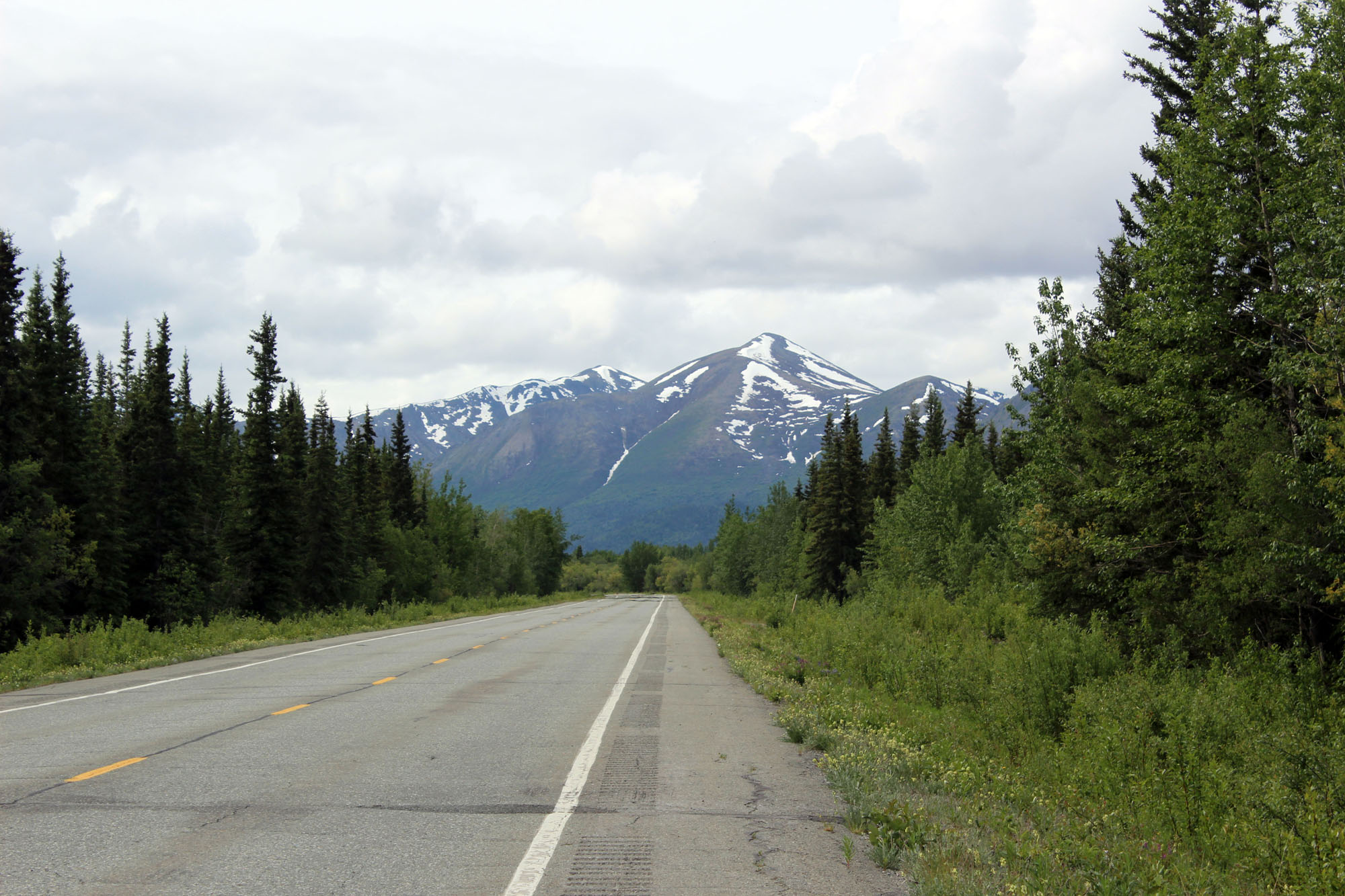 Glenallen is a natural stopping point on the way to Valdez and I kept hearing from our guests how beautiful the drive down there was. Their feedback, coupled with the fact that this road was named one of the most beautiful in America made the drive an obvious choice for our first sight seeing day trip. Our goal was to make it down to Worthington Glacier and put a major check on my bucket list by walking on it. So we got up on Sunday, packed a lunch, and headed out. The first 40 miles or so from Glenallen was nothing special. The road is not in great shape (it’s not Tok Cutoff bad, but not great) and the scenery was largely forest. Then about 40 miles in, we saw this.