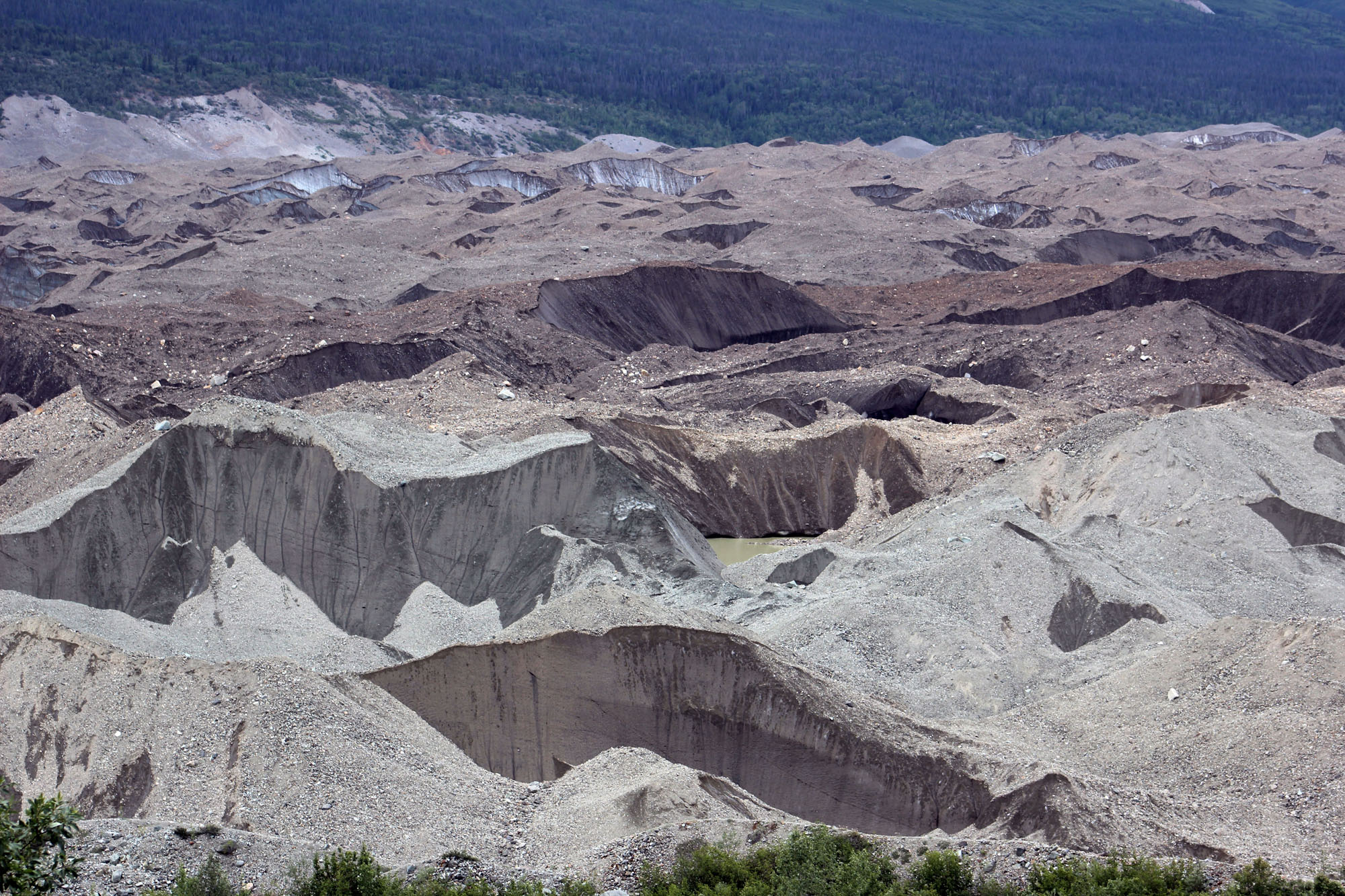 Finally we made it to the end of the road and this is where it gets a little strange. There is a foot bridge across the Kennecott River that you walk over to get a shuttle ($5 each way per person). The shuttle runs every half hour and first stops at McCarthy and then at the Kennecott Mine. You can walk to McCarthy and pick up the shuttle there (3/4 of a mile) but I wouldn’t recommend it. The road was muddy and congested with cars, bikes, people, and 4 wheelers. We learned later there is a private bridge that businesses and locals can purchase passage on, but the costs runs as high as $500 a season to use that bridge so most people working there for the summer leave their cars on the other side. We parked in the visitors center (which was almost full) and then walked to the pedestrian bridge. It’s a pretty terrible system, but the roads are so bad it takes each shuttle just under an an hour to make the round trip drive from the bridge, to McCarthy, to Kennecott and back (which is right around 12 miles, round trip) and honestly I’m not sure how else they could do it. The foot bridge was cool though, with a great view of both the Root and Kennecott Glaciers.
