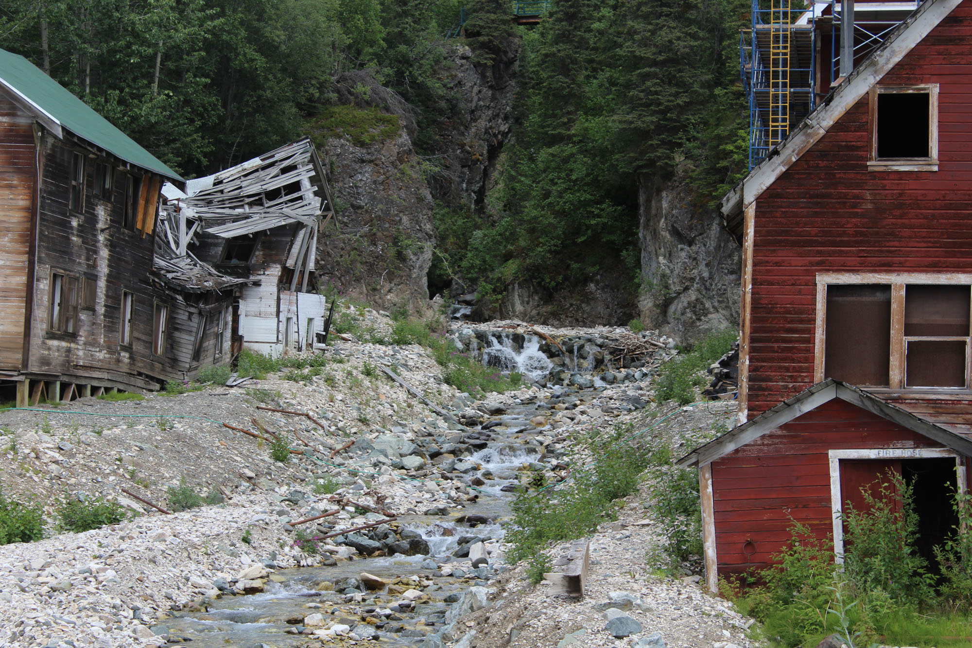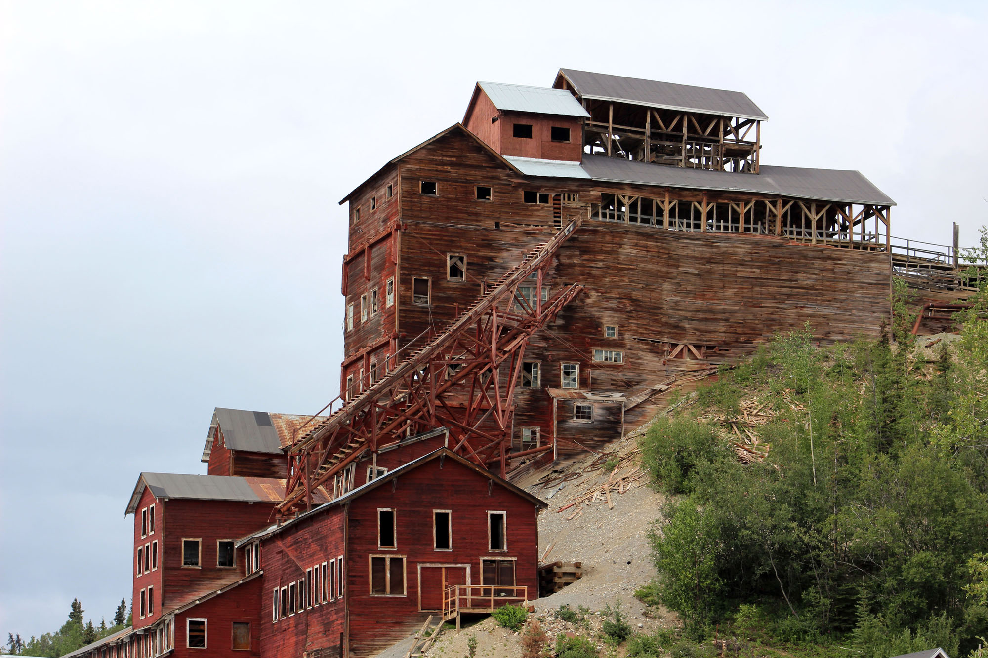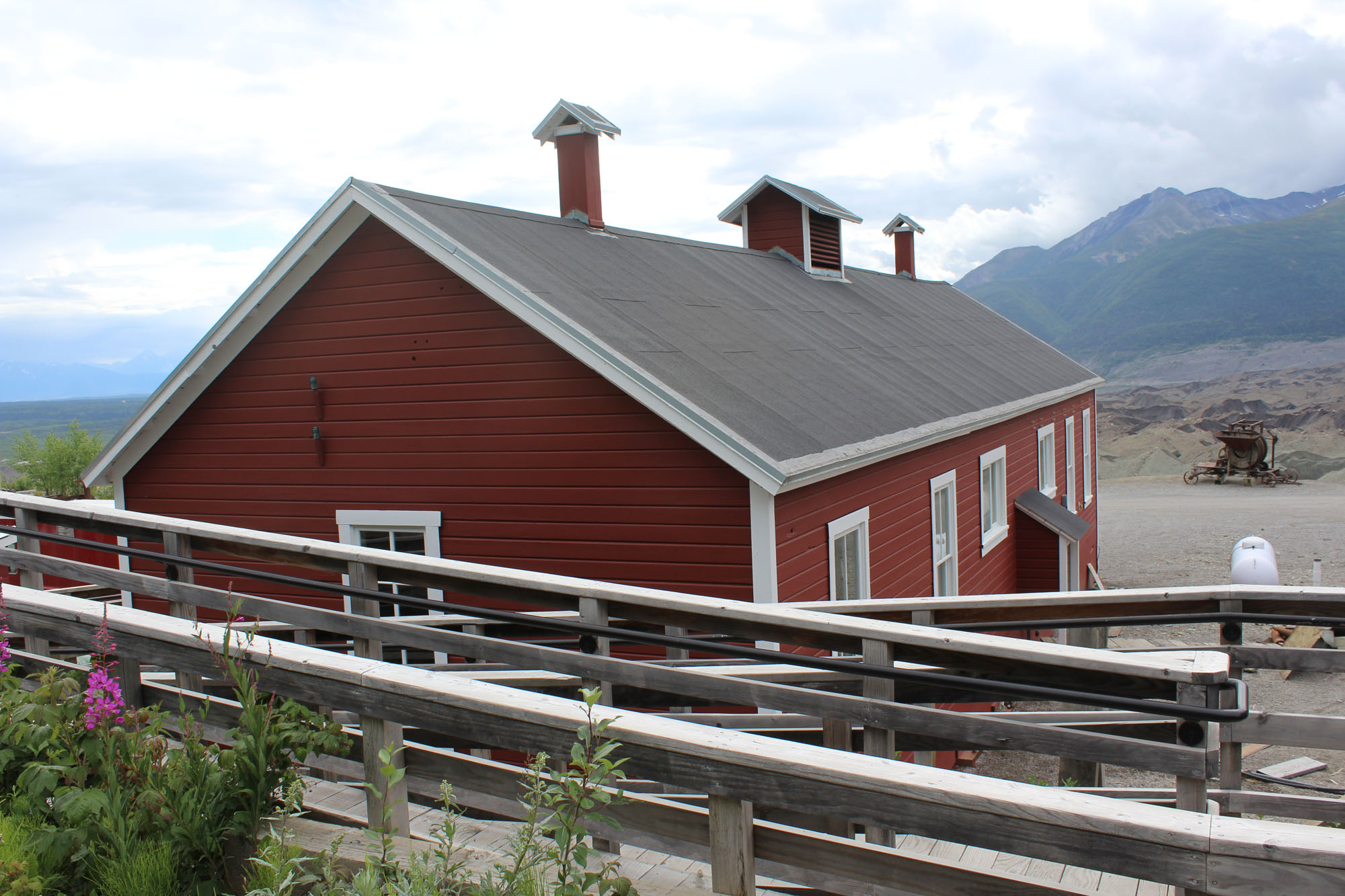 McCarthy though was really disappointing for me and in the end we didn’t even get off the bus. The roads are mud and the buildings were ramshackle, probably because the place started out as a saloon/brothel town for the mine. Historically restored building isn’t that impressive when the original building wasn’t that great. Still, lots of young people found it interesting, and there were tons of hikers in and out of the place. We kept going though and finally made it to Kennecott in time to take the 3:30 tour.