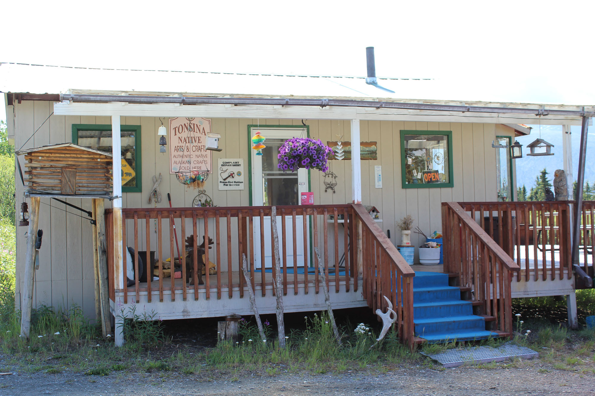Once we entered the new Edgerton highway (at Kenney Lake) the drive was the same as previously covered in the post First Time at Liberty Falls and Chitina with the notable exception of a native gift store that we stopped at this time along the way. This little store wasn’t open the last time we came through, and it was so worth the stop. There is a sign along the road right before the yak farm (yes that’s how we give directions out here in Alaska lol) and it was not only native owned, but contained some absolutely beautiful pieces of art. The owner of Tonsina Native Arts and Crafts also had a small case of historical items at the store, and really it was everything I had been hoping to find in a store. I ended up buying something for one of my nephews but there were many beautiful pieces I wish I could have been able to afford. They also had a basket full of pieces of moose horn priced from $22 -$35. Many people want a piece of moose horn to use in a craft or take back with them, and this is the first place I have seen the raw material for sale.
