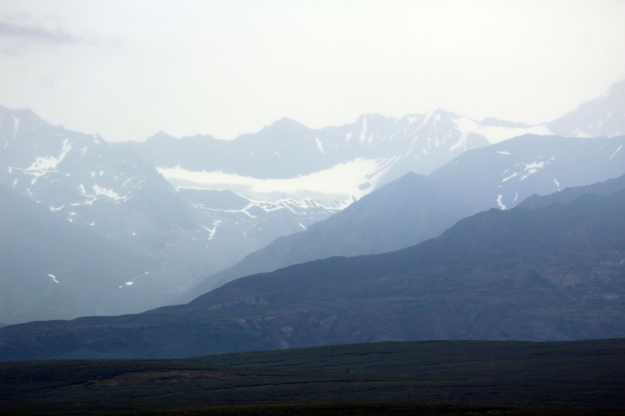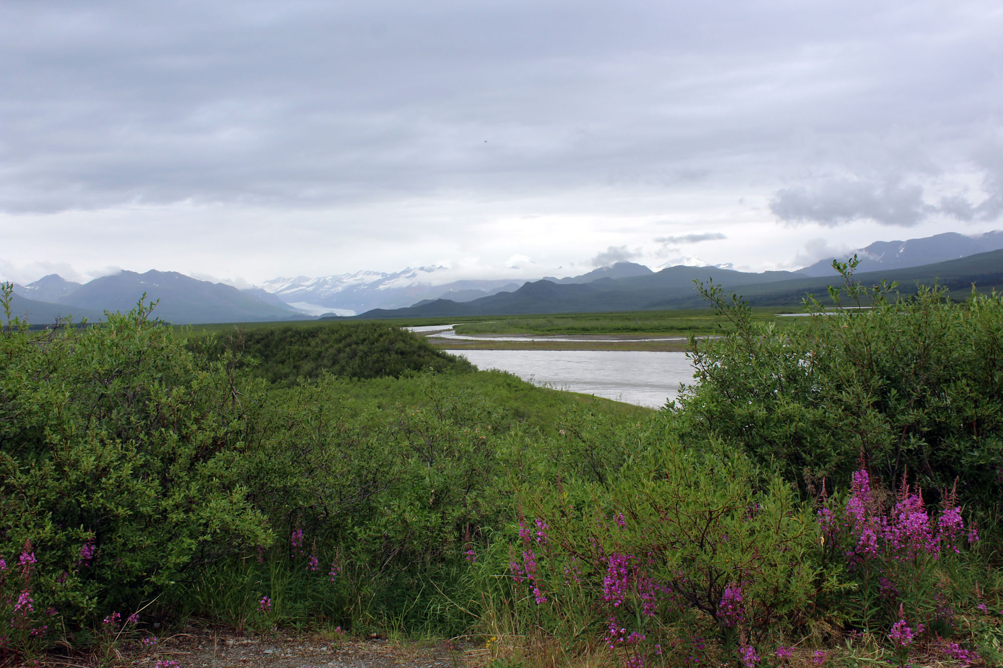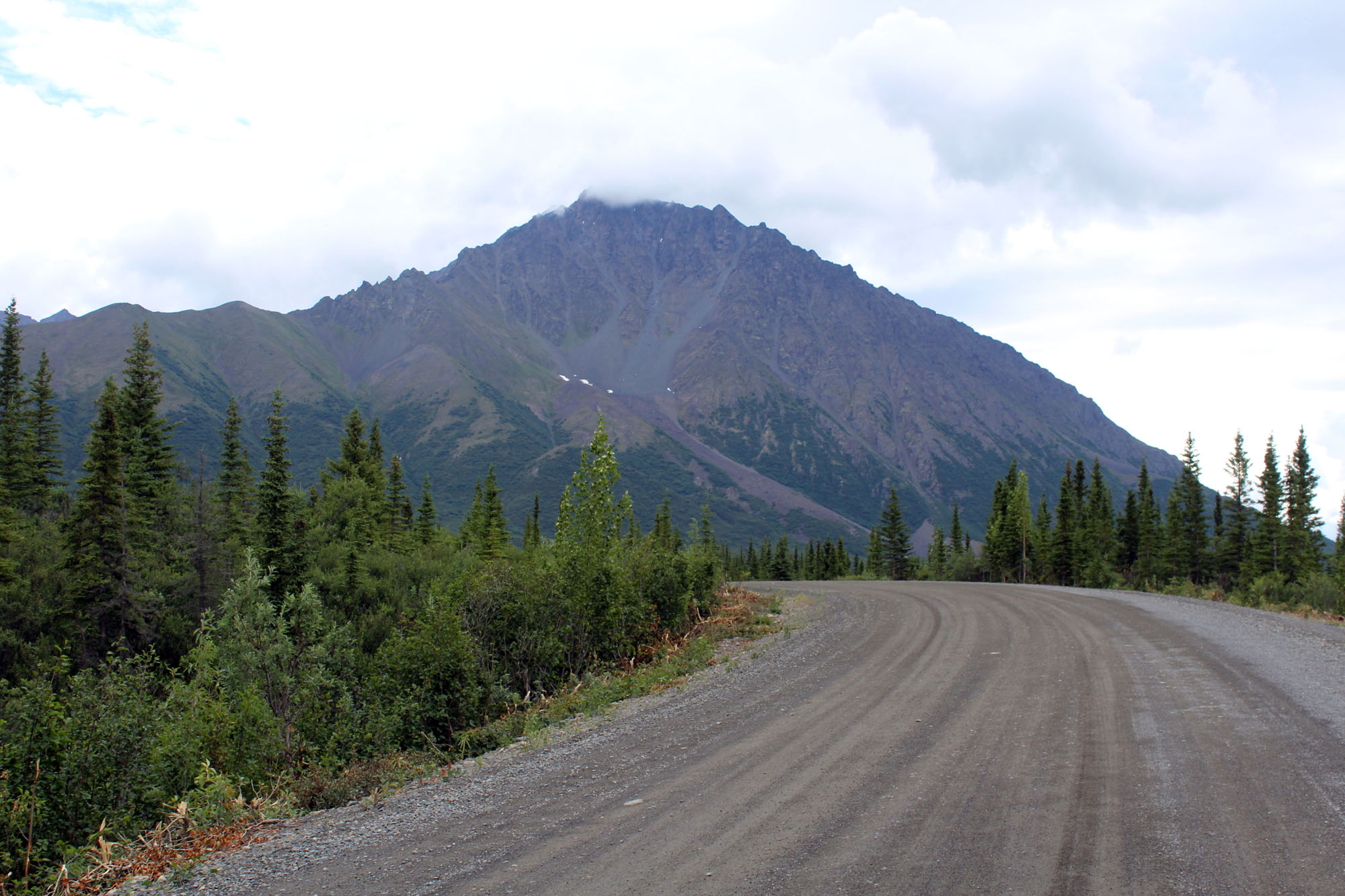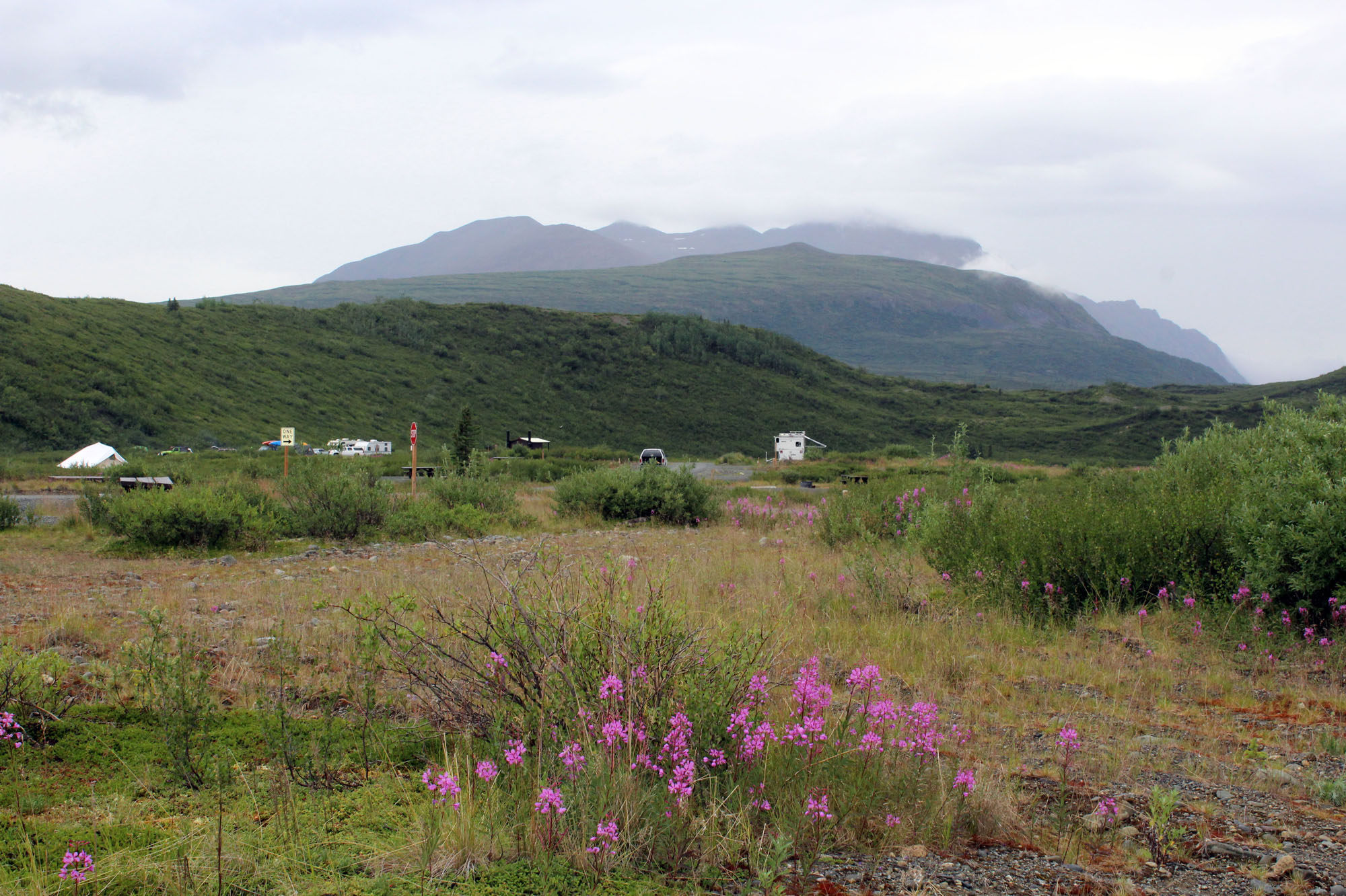 MP 13 The Wrangel Mountains were largely obscured by clouds but there is a great viewpoint of Sanford, Wrangell, and Drum on a clear day