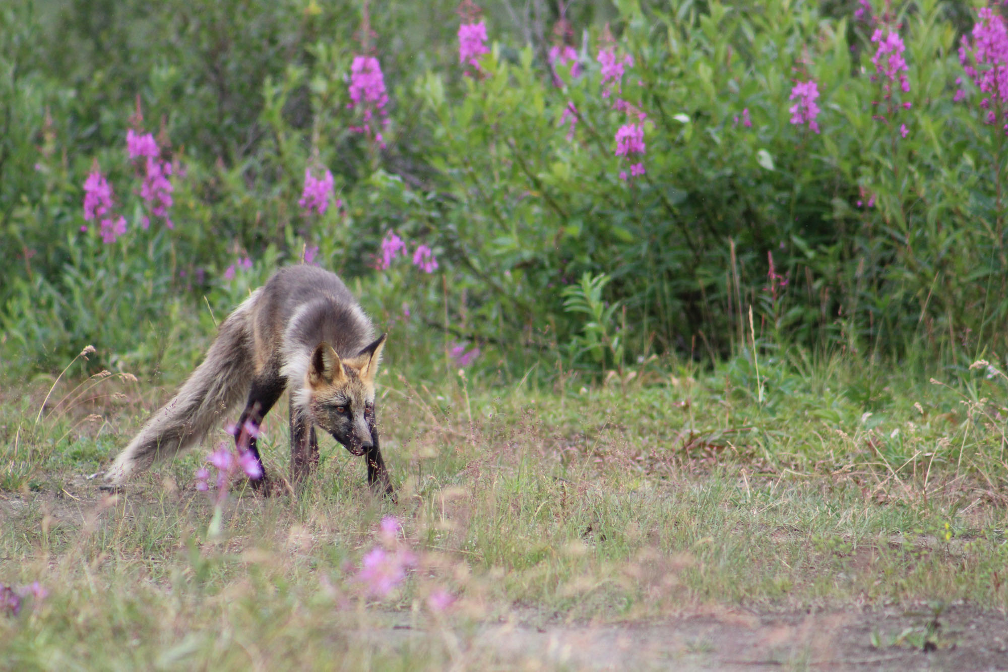 Around MM50 there are a series of small lakes, several of which had ducks on them and the literature saif to look for shorebirds, moose, caribou, beaver, and fox in the vicinity. Sure enough, a little while later we had our only animal sighting of the day, a fox which was walking down the road. It was a great sighting though as the fox allowed us to take some great pics and it was our first fox in the wild sighting ever.