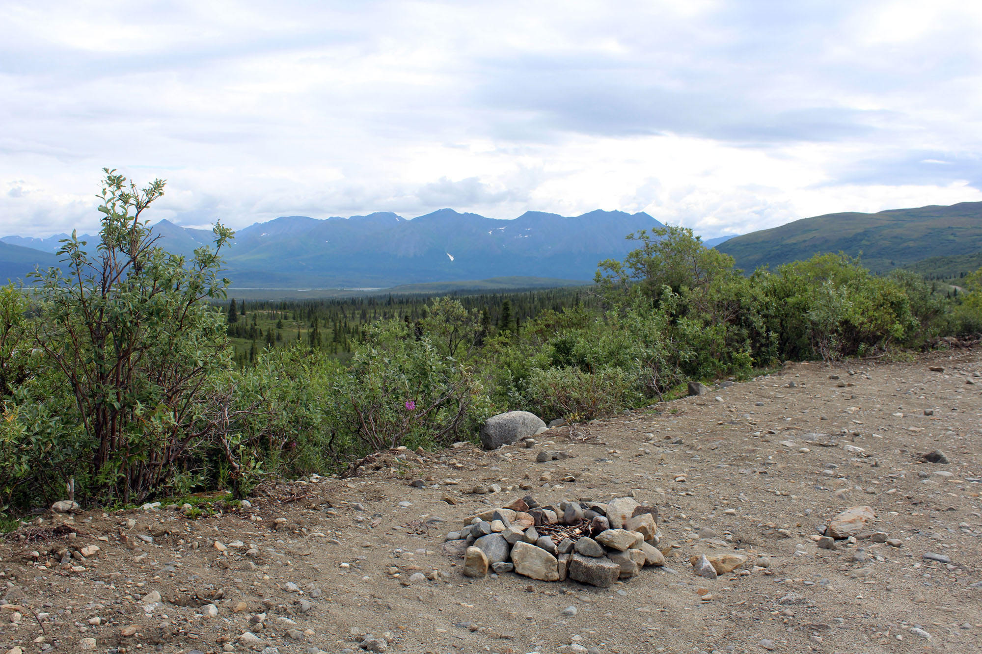 The BLM pamphlet isn’t just about cool vistas though. It also talks about geological points of interest like Palsa’s which are “small, dome-like mounds” 10-20 feet high which contain peat. I have read about peat in many books but never actually seen it and was very interested when we ran across this one around MP 41. It was so big I didn’t know what it was at first.
