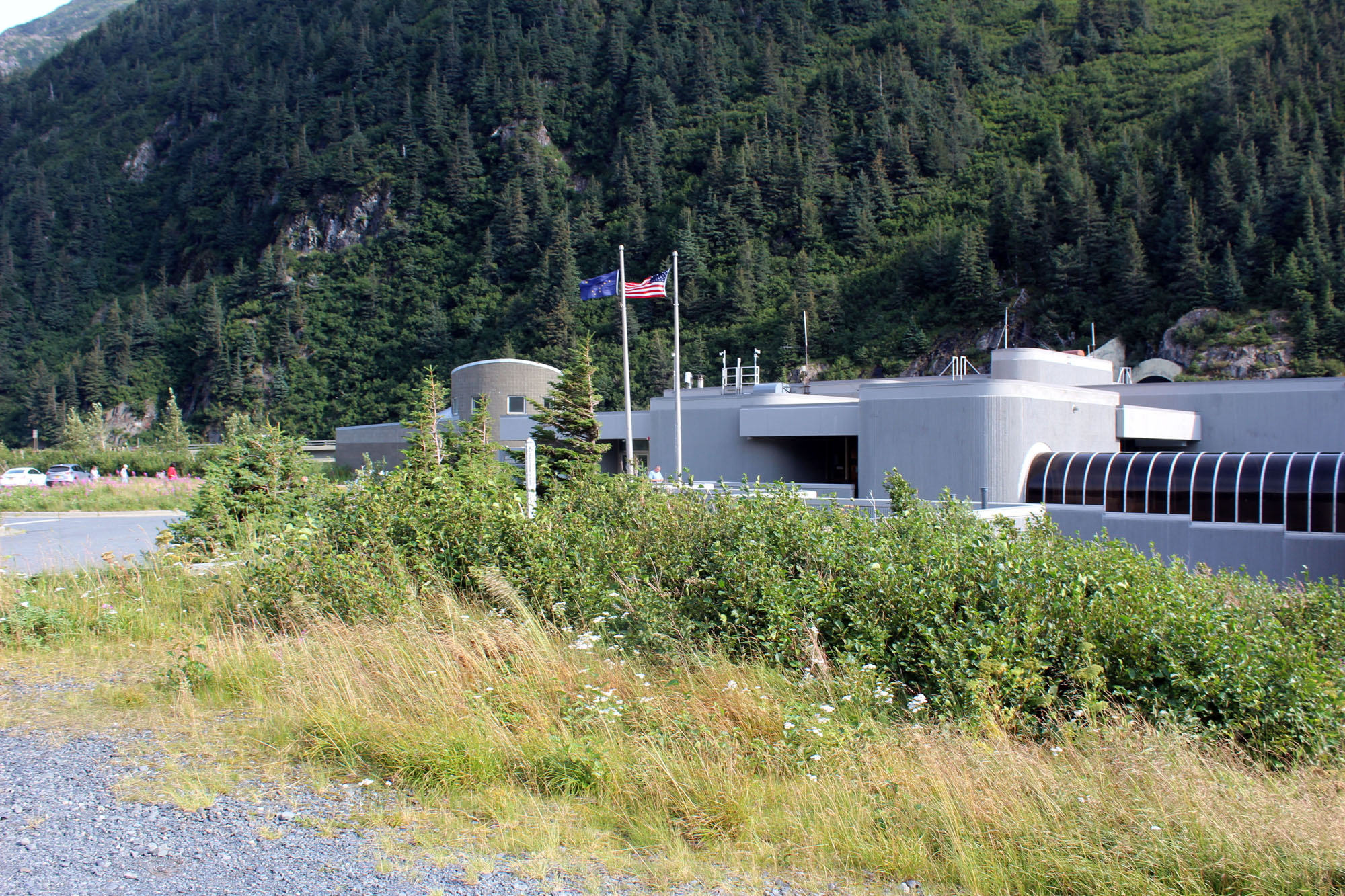 The next morning we all got up pretty early and headed out to Whittier. Whittier is a weird town where the only access is a one lane tunnel, and even that lane is a railroad track. Both cars and trains share this single access in and out of town, so the direction of the traffic is scheduled. There is one 20 minute window per hour and if you are late you are waiting until the next one, so between that schedule and the train schedule we wanted to give ourselves plenty of time. It also costs $13 for the trip through the tunnel (only paid going in, not going out) so we took two cars to the visitor center in Portage outside of town and left our truck there, and then jumped in with Bill and Kelly.