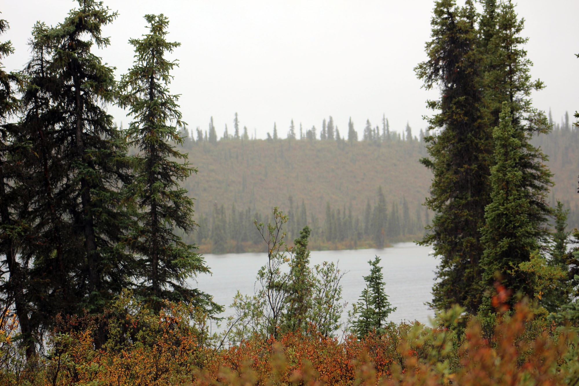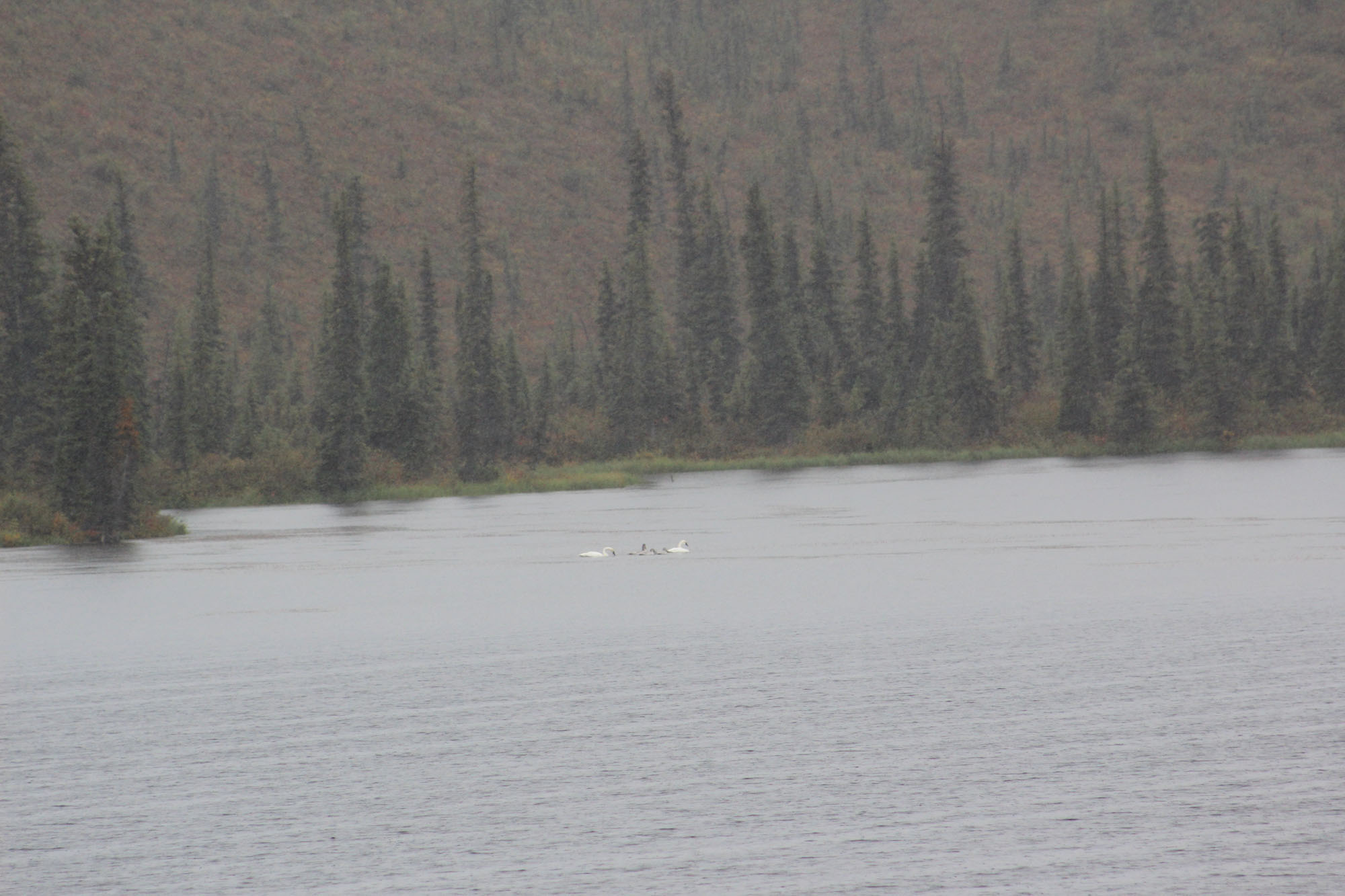 As you can see, it was raining, so the rest of my pictures I actually had to take with an umbrella over me, and because we were getting worried about the condition of the road we only went down to MM 21 (the road goes 42 miles) and saw the campground and then turned around. The Kendesnii campground was really nice, and if we ever come back to Alaska in a smaller rig I would love to stay there. It sat on two lakes and had a really nice walking path along them which I went a short ways on to get a few pictures. There was a family of trumpeter swans on the lakes and I bet it is absolutely stunning when there are mountain views.