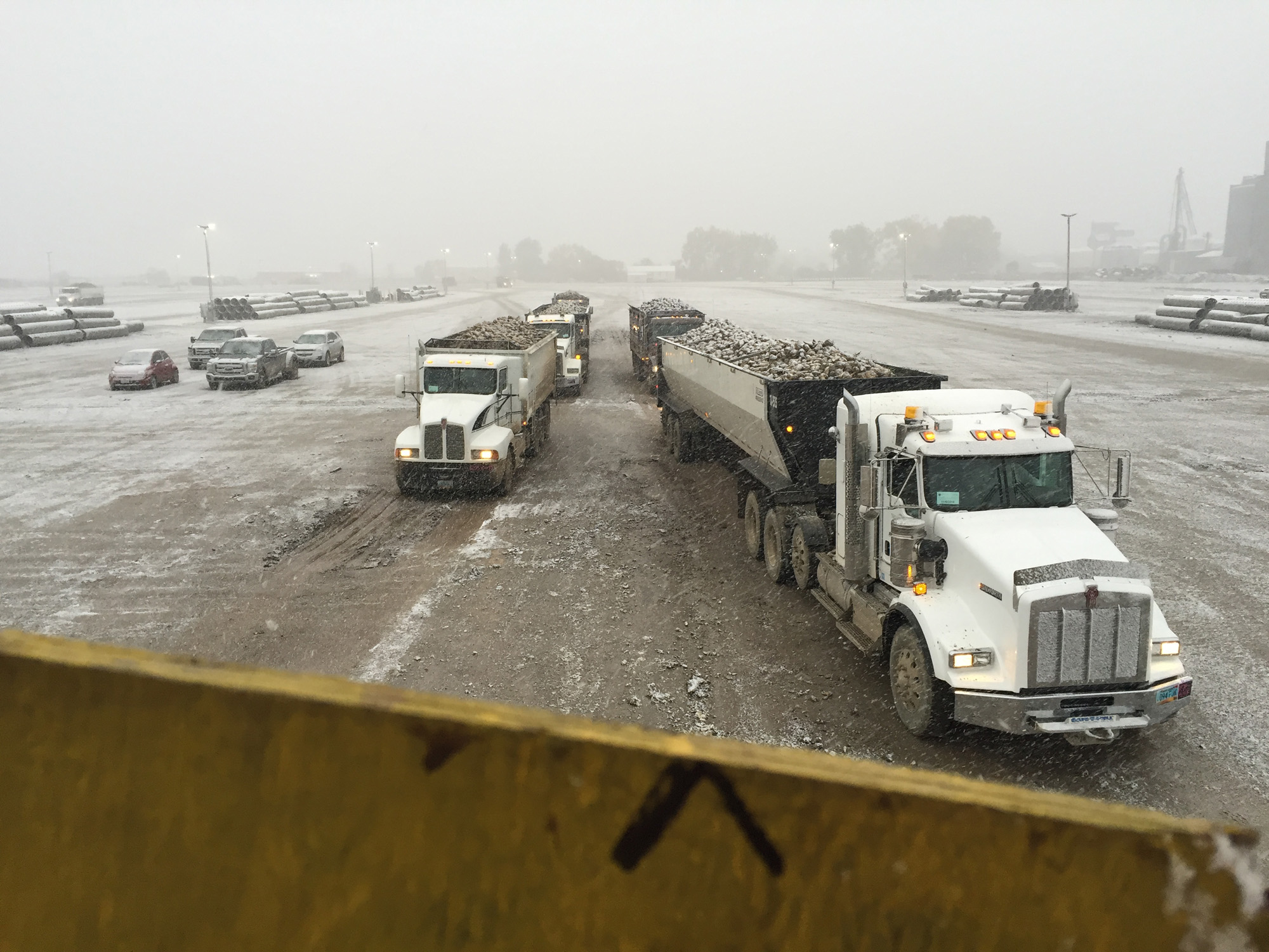 - 5:55 am usually taking our first truck, if it’s slow may be a bit later. If the night shift has our piler open might be a bit sooner.