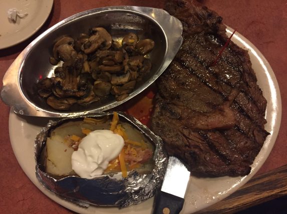 While we were in San Antonio, I also reached out to Cori and Greg to see if they were free for the evening. We had talked about going down and seeing the lights on the Riverwalk, but with the shopping crowds we were all a little tentative about that. Plus I got an email from my aunt Cathy with a gift certificate for Montana Mike’s restaurant. My aunt has been reading my blog posts and really enjoying them and she reached out to say she and my uncle wanted to buy us dinner for Christmas. I was incredibly touched by this. Not only because she was reading the blog, but also because she wanted to do something nice. It made us both feel closer to my grandmother Betty, who would definitely do something like this, and it made me feel closer to family. She went to some trouble also, finding a local steak place and then getting a gift certificate sent to us. Unfortunately the certificate didn’t arrive as expected to general delivery at the post office (I think it was because of holiday mail traffic) but instead of just letting it go she called the corporate office and got them to agree to an email with the gift card number on it. Really amazing.