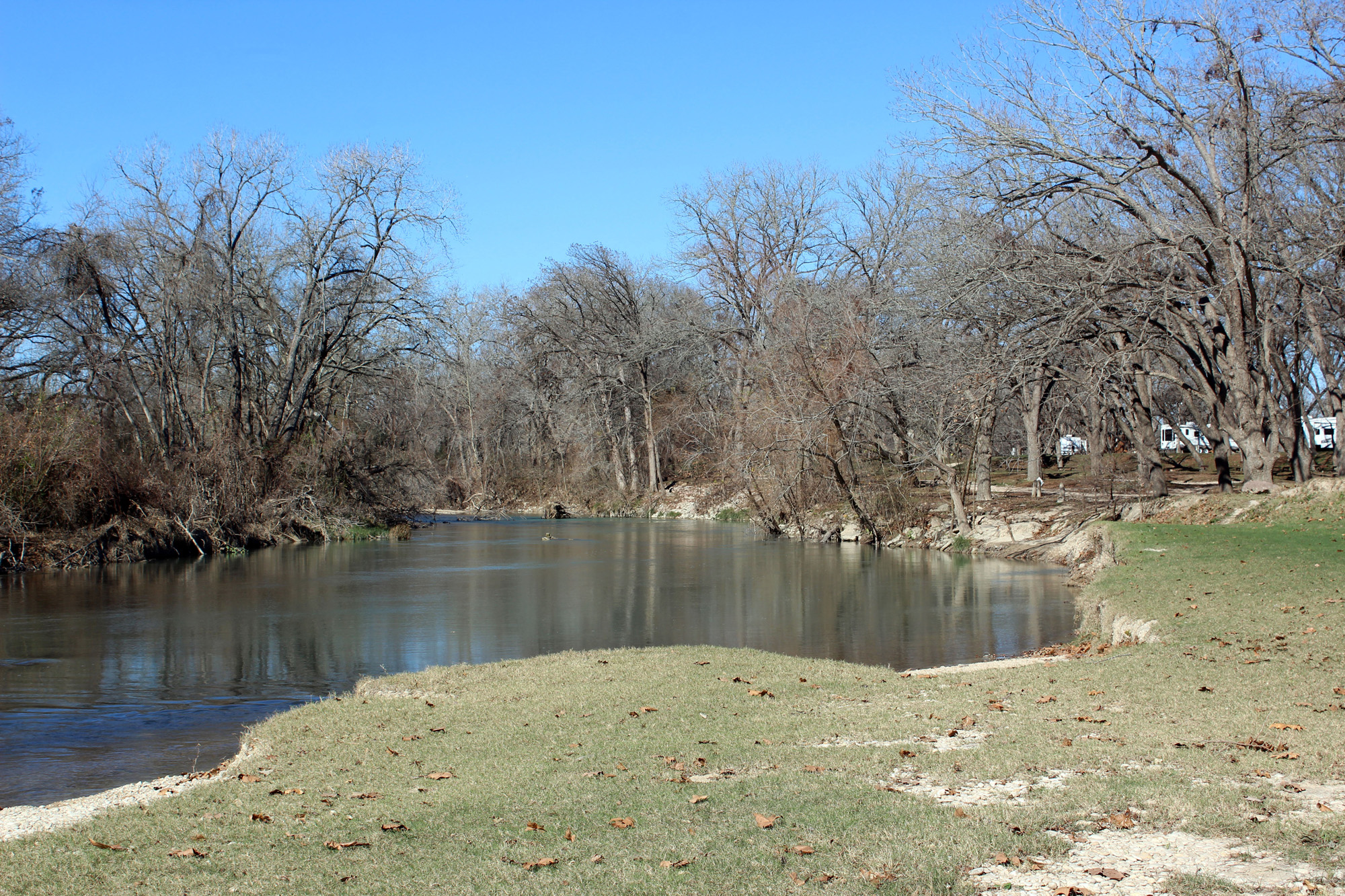 Bill called again and it turns out the phone call from yesterday was never registered.  (We found out later that another Perkins had the exact same issue back in May and somehow the help desk person at the warranty company got confused and reopened that same call.  When the claims adjuster came he had two open calls for the same problem for two different rigs, owned by two different Perkins’.  Bizarre)  So we were back to square one, and an adjuster would be coming out Monday or Tuesday.  This time we were smarter and found a Passport America campground for only $21 a night.  Leisure resort was 30 miles away from Camping World, but honored Passport America on the weekends, which none of the others did. Plus, it’s a really pretty campground with a river running through it, and since it was supposed to get super cold, had 50 amp service. As a bonus the work kampers were very nice and Lee was in a much better mood after he checked us in.