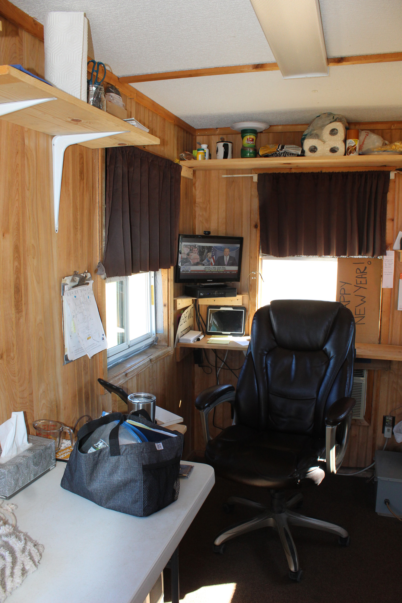 My neighbor invited me down today to see my oil rig since she has a great view from her location. I also got to see her guard shack, which was very interesting, and meet the person she and her husband are sharing the shifts with. Some of the gate guarding jobs are from your rig, but others have a shack. I really liked how it was set up and they even had satellite TV inside. According to them, some gates still make you go outside to check in trucks, but theirs was awesome because they were allowed to stay inside. They had heat and AC, and even Millie the resident cat.