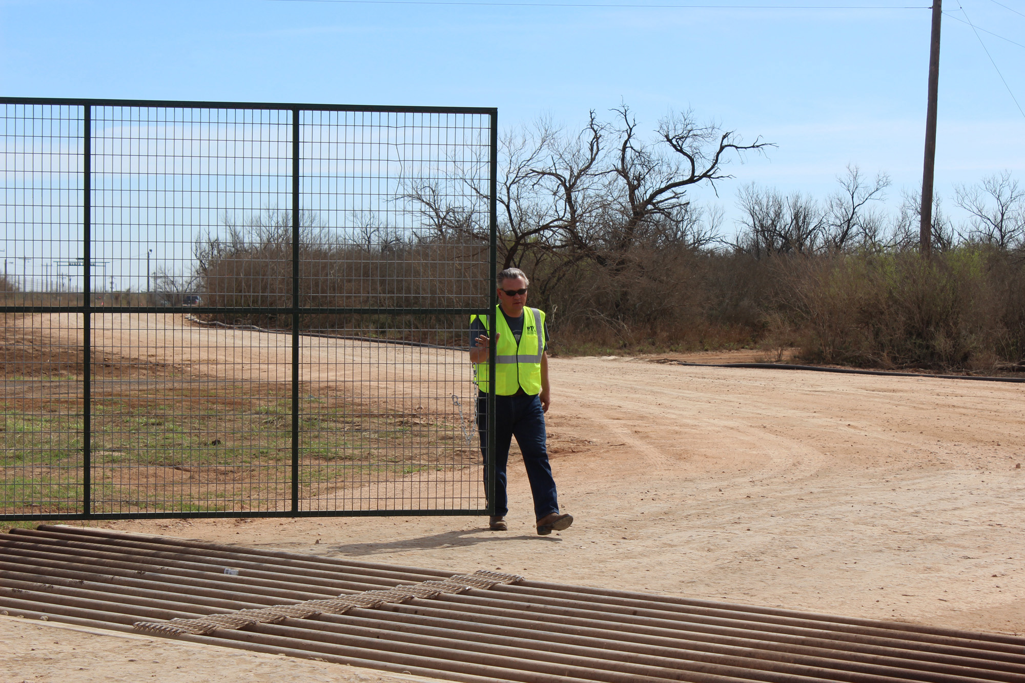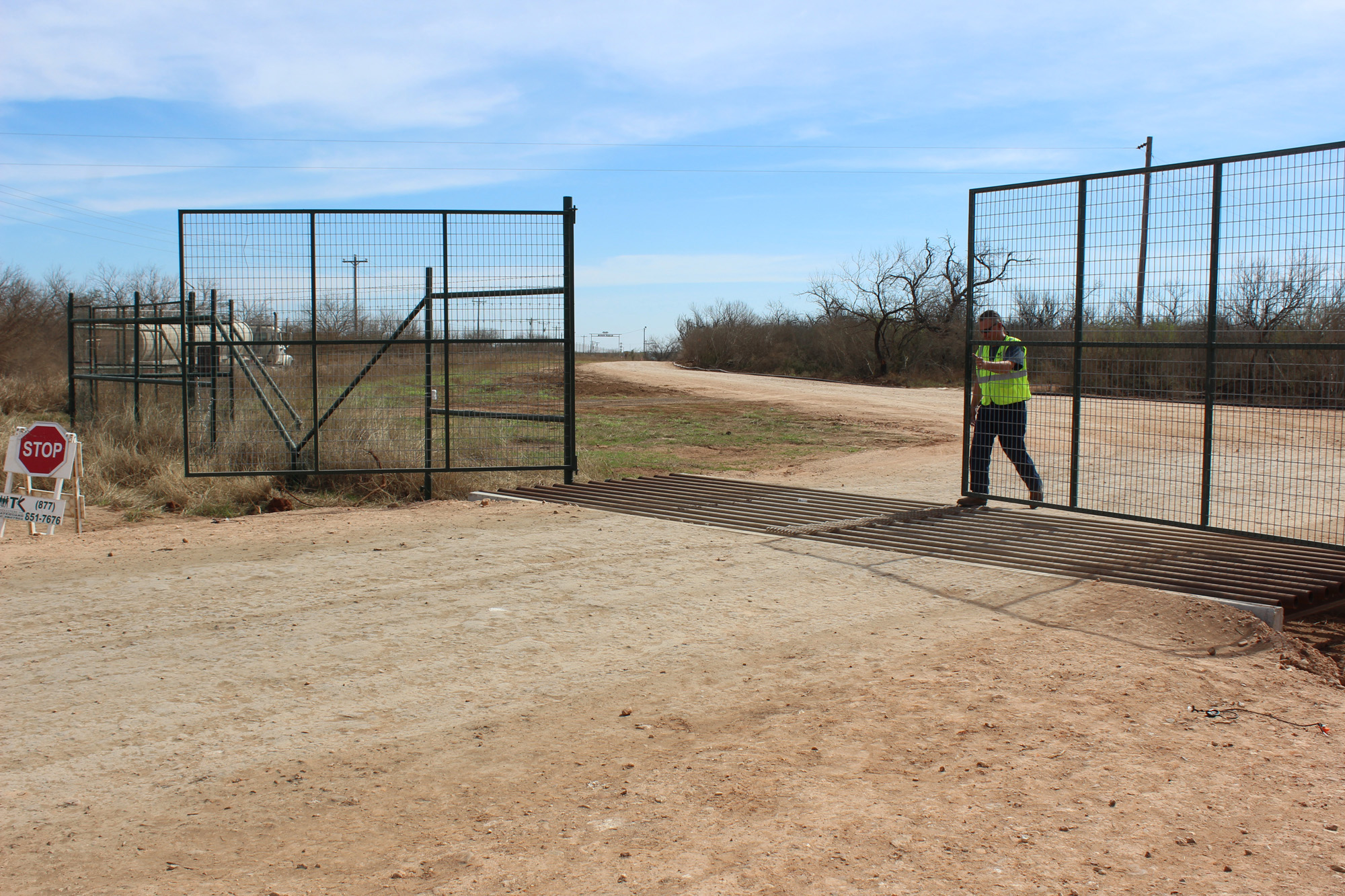 Lee says that won’t work because we need something that allows the gate swing free. Also wouldn’t we need to speak to the ranch owner first as technically it’s his gate or does the company man coordinate that? I do agree with you the safety angle is a good one