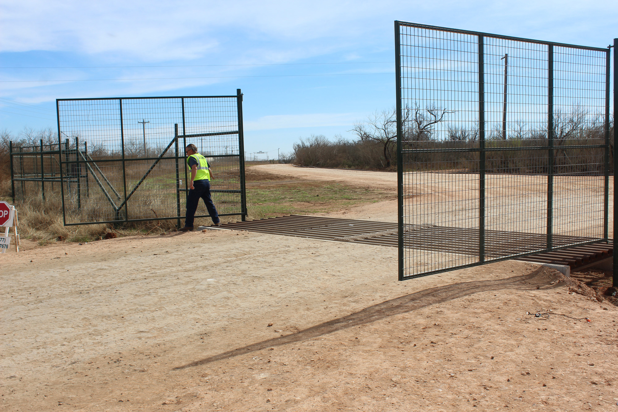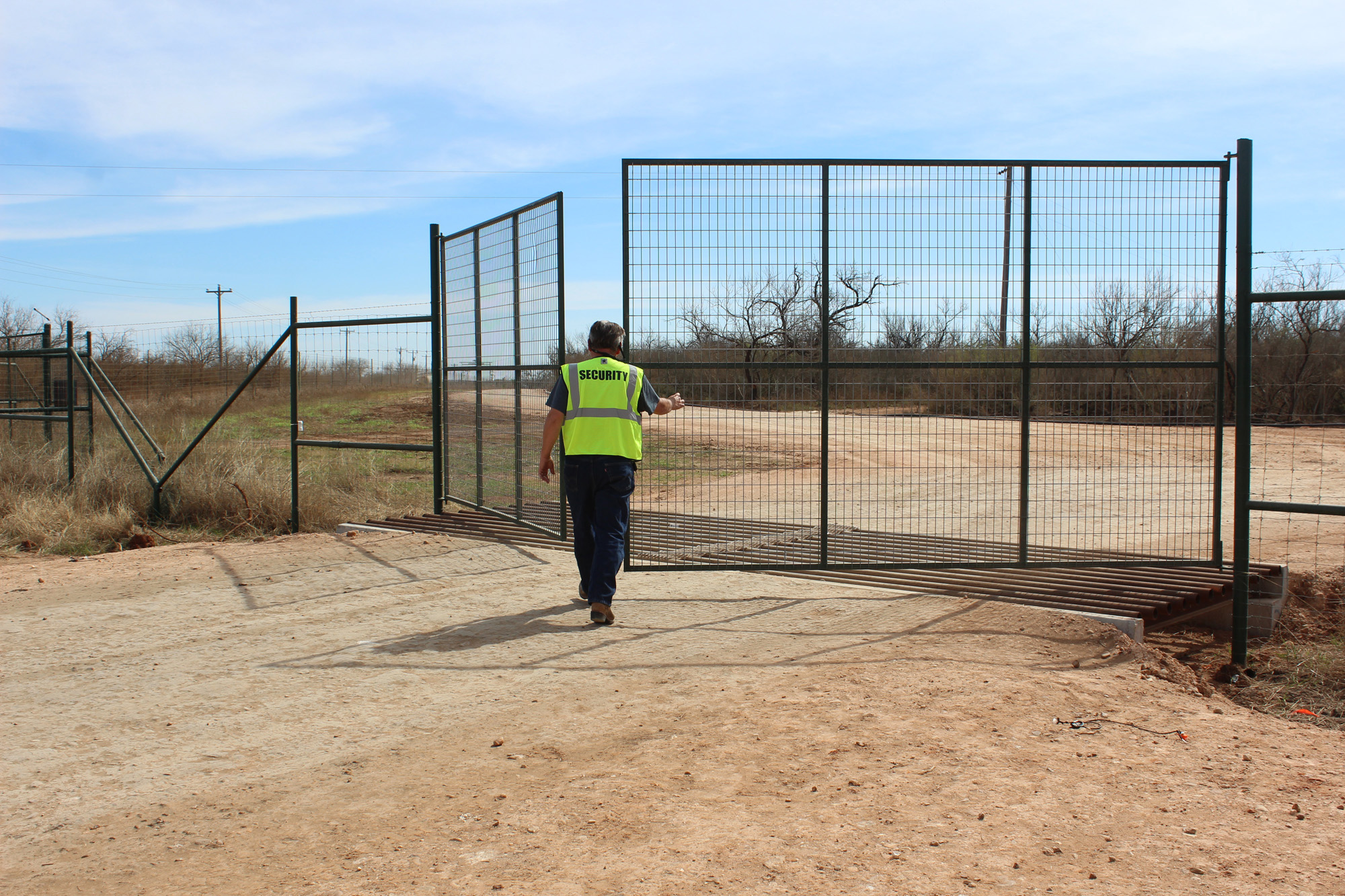 And to add, if those are 10′ panels, I would swing the free one open and allow 4 wheel traffic in. Log them in and out at the gate. Both panels would be opened only for larger vehicles.