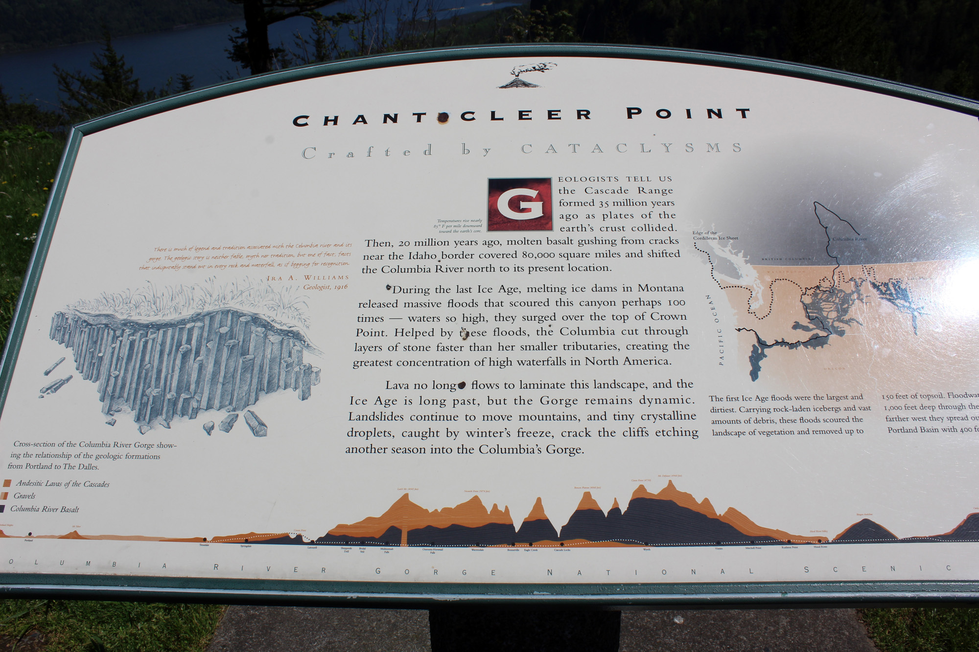 A ride west down highway 14 on the Washington side gives a different perspective of the Oregon cliffs.