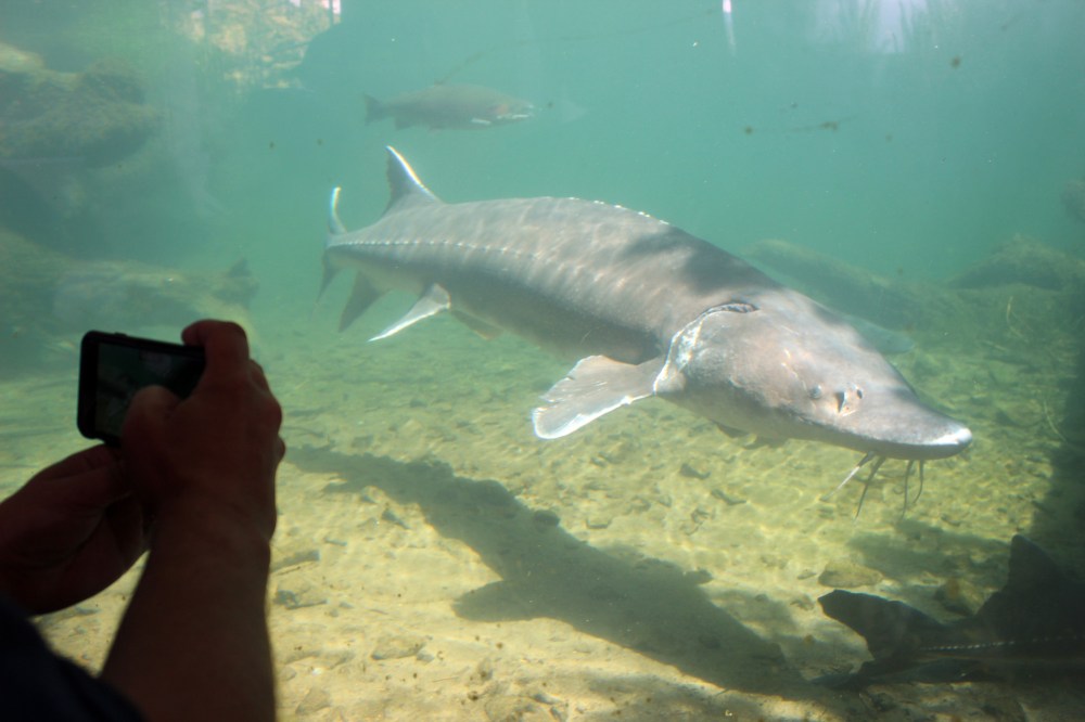 Sturgeon are amazing in that, as a species, they’ve been around since the dinosaurs! The Great Lakes have them also. They really do resemble sharks, even though they are bottom feeders and are harmless.