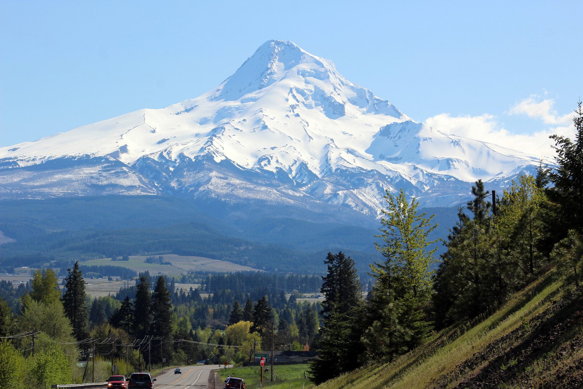 Then we headed back down Route 35 which is along the Hood River and saw lots of farms. We can’t wait to go back there in July when all the farm stands are open, but we did get some amazing shots of Mount Hood on this perfectly clear day.