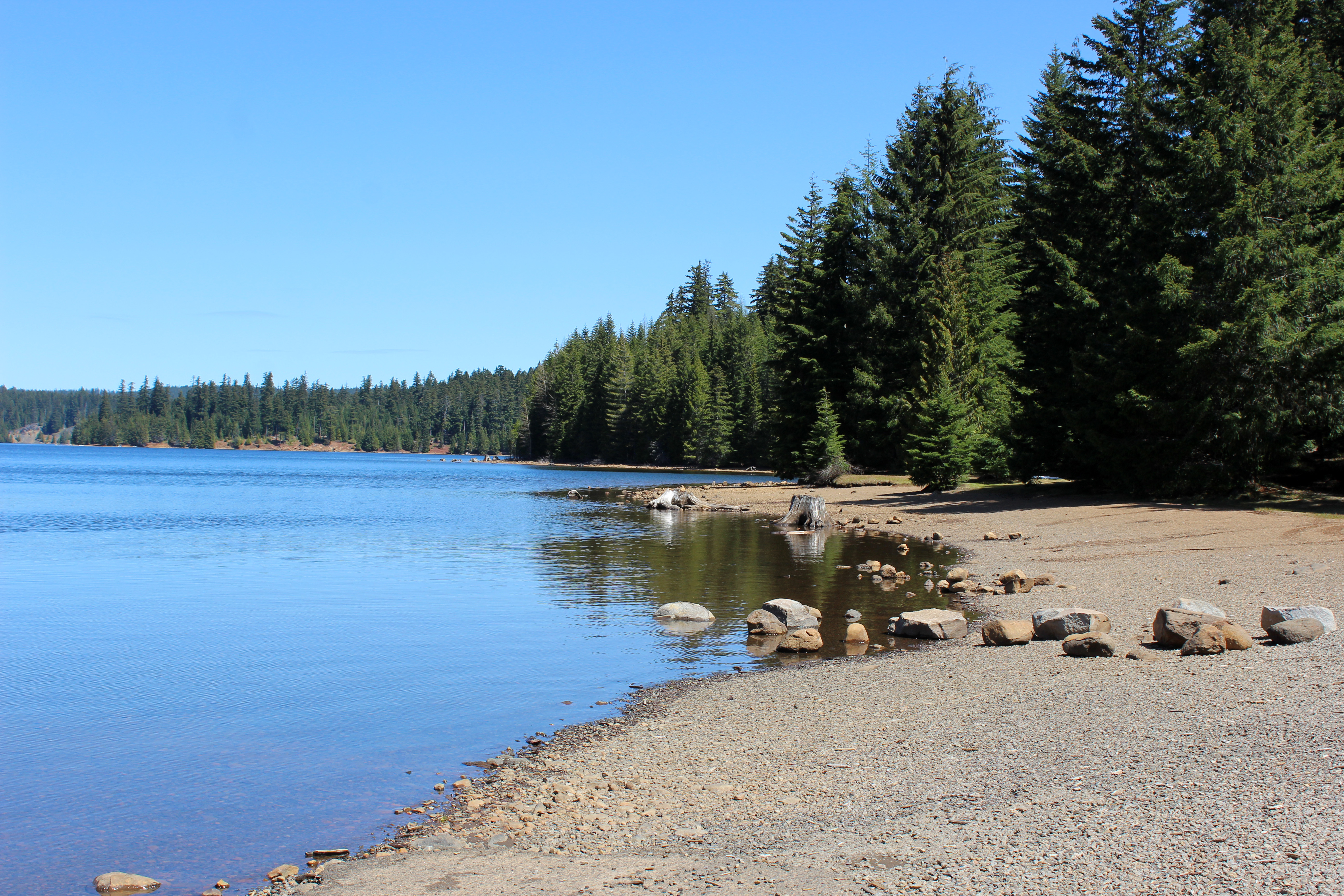 All across the country there are campgrounds, marinas, and day use areas owned by and/or operated by local utility companies. Sometimes maintaining locations is required by contract, other times it is done for conservancy, providing additional customer value, or sites for employee recreation. I have had friends who have stayed in these places and even stayed in them myself a time or two, but I have seen nothing on the scale of what is happening here in Portland. We didn’t really understand the scope of it, until we decided to take a ride up to the Timothy Lake location. Since our campsite in our campground is a new one they are creating, we didn’t have a fire ring, and when we asked we were told there would be extras at Timothy Lake. We could have waited for someone to bring one down to us, but since it was a nice day we decided to drive up and see it for ourselves, and save someone that trouble. The main road to the campground still had quite a bit of snow on it, so it was recommended that we take the back road. This was a twisty, turny road and led us through National Forest, past Lake Harriet which has a dam, a small campground and day use area.