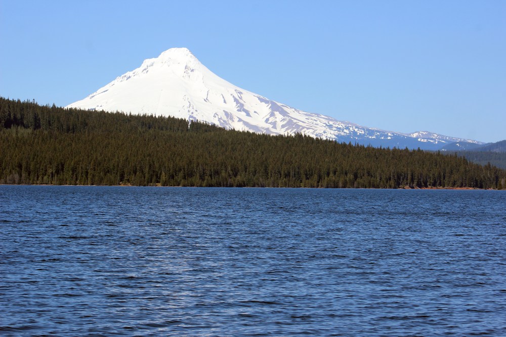 Eventually we made it to Timothy Lake and received a very warm welcome. The campground is still closed and not all the camp hosts were there yet, but everyone we met was very nice and helpful. Not only did they find us a brand new campfire ring, but they also encouraged us to look around and told me where the best campsite would be to take a picture of Mt. Hood across the lake. This is a huge lake with multiple campgrounds around it, plus a lodge that can be rented by utility company employees. Although this is a National Forest campground and the reservations are handled by Reserve America, because of the dam and lake it is watched over by company employees. This is an example of a positive partnership between a business and our forest service and from everything I have seen relationships between the two entities are very strong. The Forest Rangers here cover 1.1 million acres, and since this is a very popular campground area it is important to have people on site continuously. Most of the camp hosts we met work out of Timothy Lake and many have returned year after year because they enjoy the beautiful setting. (Some have been coming back for 16 years or more, which in my opinion says a LOT about the company. – Lee)