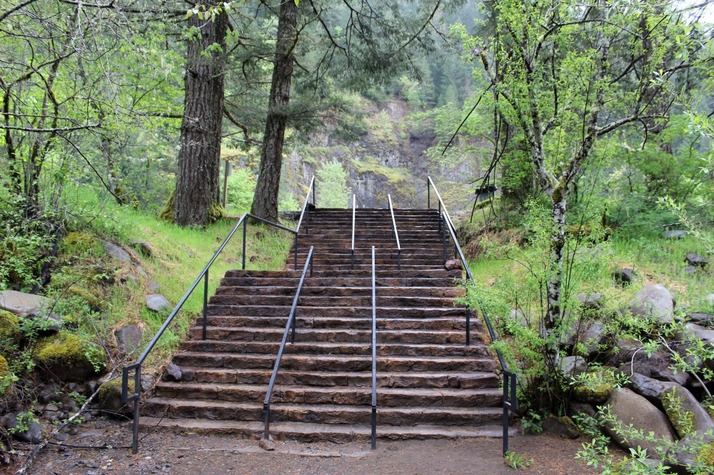 View from the bottom looking up. I need to watch my step on the rocks. I think they push the boats down this path and then walk down the gravel path to the right.