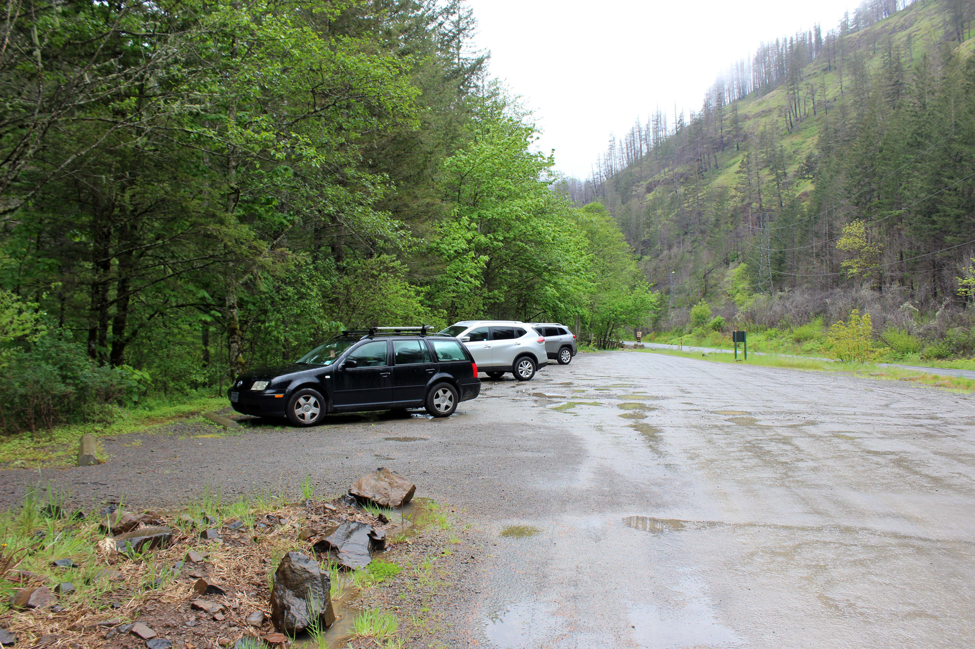The parking lot is used by rafters and by folks who are driving the road and need to use the toilet.