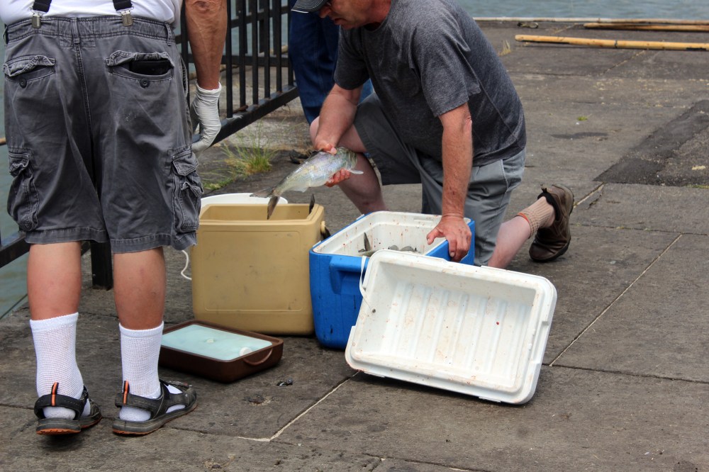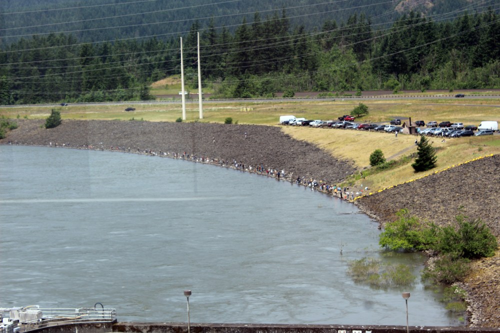 All of those little dots along the waterline were people fishing at the end of the fish ladders. Huge crowd for a Wednesday at noon