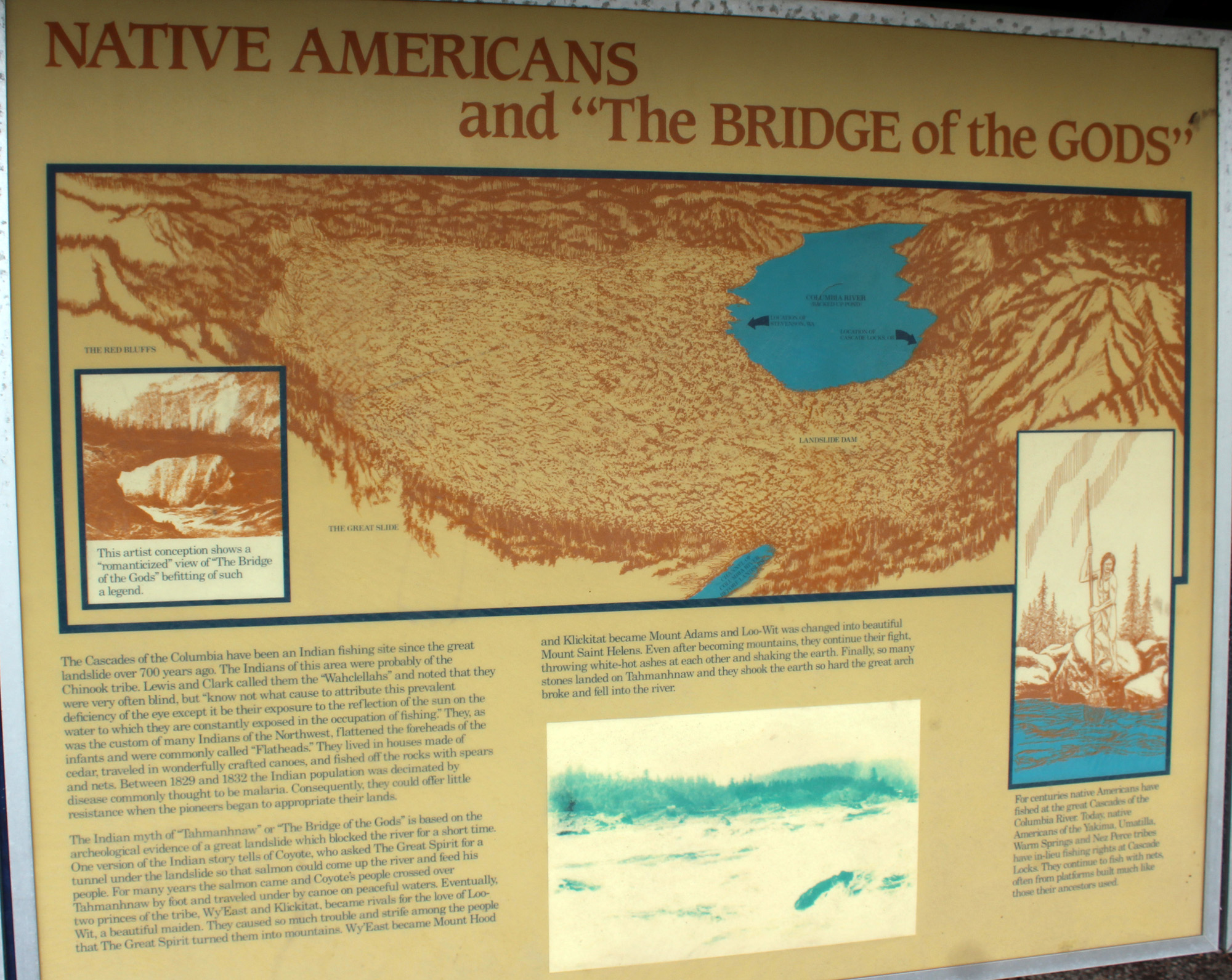 Native American folklore talked of a time when a landslide allowed for a natural bridge across the river. While it existed the people were able to catch many salmon