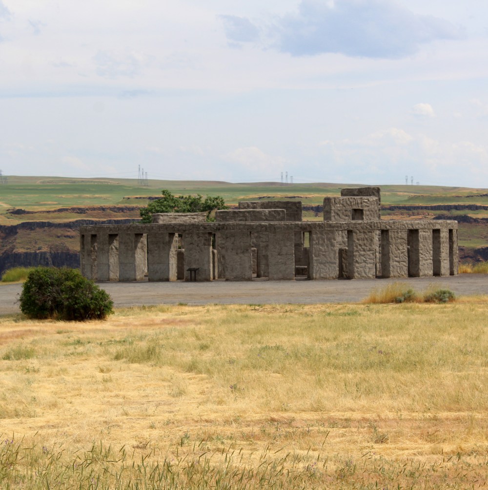 And somewhere along the way we passed the line between the west side of Oregon/Washington and the east side. It was really interesting because the landscape changes and the temperature jumped from 85 to 92 degrees.  It was much hotter, but beautiful in it’s own way, but we kept on until we reached a site recommended by our friend Ruth.  It was pretty far from everything else, and I was tempted to turn around, but Lee really wanted to see it and I am glad we did.  Stonehenge is a life sized re-creation of the original and was the first WWI war memorial in the United States. Sam Hill was a local patron in the area and a pacifist and Quaker.  He visited England during WWI, saw Stonehenge, and was told that pagan sacrifices were made on the altar.  He built this memorial to honor the fallen from his county, but also used the Stonehenge image to make a statement about the war.  Knowing today that Stonehenge was probably not used for pagan sacrifice but was rather a sundial, I didn’t expect to like the memorial very much, but surprisingly I did.  It was very well done and absolutely honored the fallen.  The good news is you can easily visit this monument by exiting Highway 84 and it has a large parking lot that will support big rigs.  I highly recommend it if for no other reason than there are stunning views of the river and the valley from here.  I also found it extremely photogenic and I know this is a picture heavy post already, but I have to share some of these.