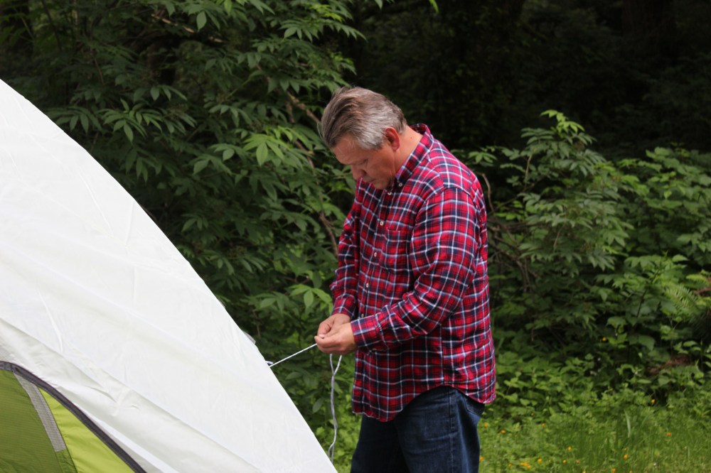 Lee was trying to figure out the tent. There were lots of strings we never really figured out how to use.