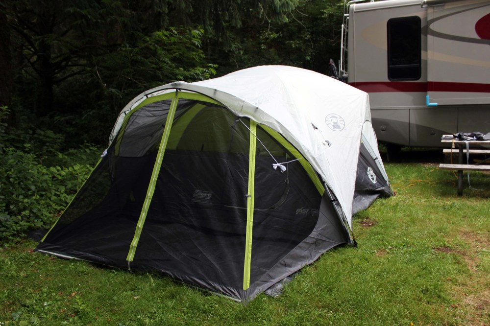 A few weeks ago I realized that three of our RV-Dreamers friends were both volunteering at Heceta Head Lighthouse at the same time, and were both staying at the Carl G. Washburne State Park. This was pretty amazing, since they had never met each other, and it was a sheer coincidence that they would be at the same place at the same time. We immediately knew we wanted to spend the weekend with them but weren’t quite sure how to work that out, and after considering moving our rig, or staying with Rick in his Class A, or taking our tent, we decided to take the tent. Not only would be get to hang out with them, but we would have a place to take our trial run with the new tent, and if things went horribly wrong, at least we would be with friends. At the end of our work day Monday afternoon we headed for the coast.