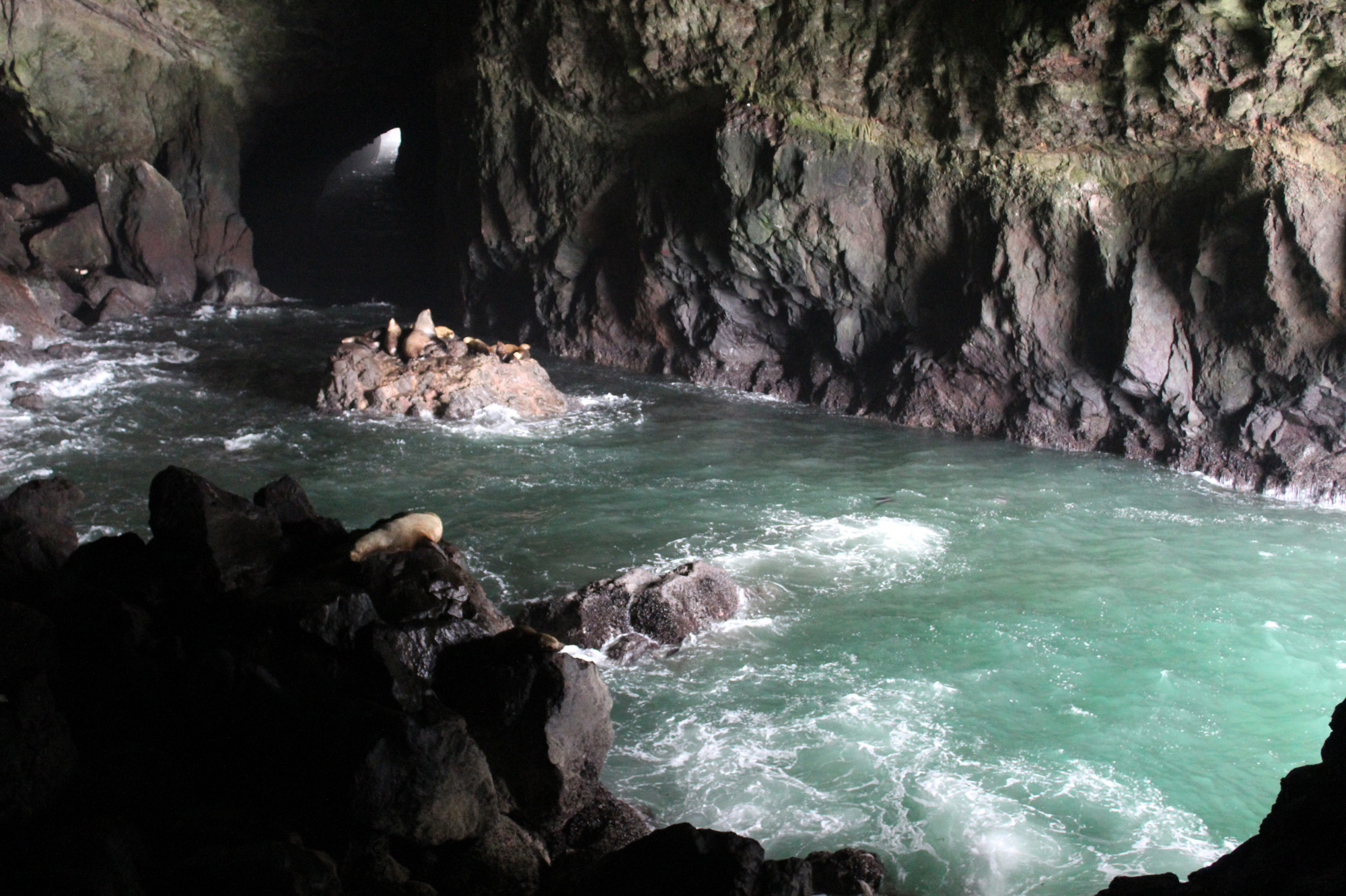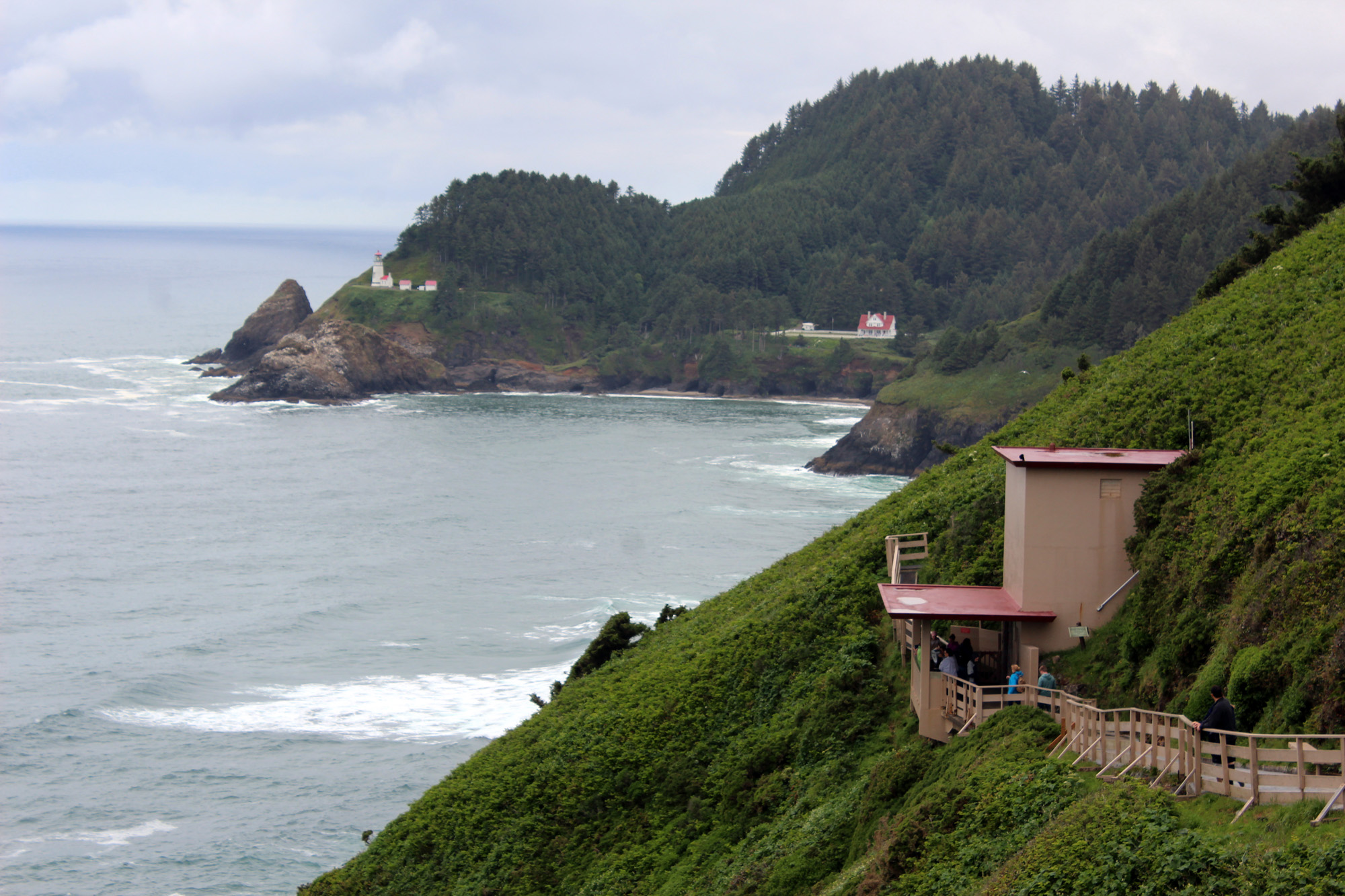 There was a neat waterfall on one side of the caves and a view of Heceta Head lighthouse in the distance