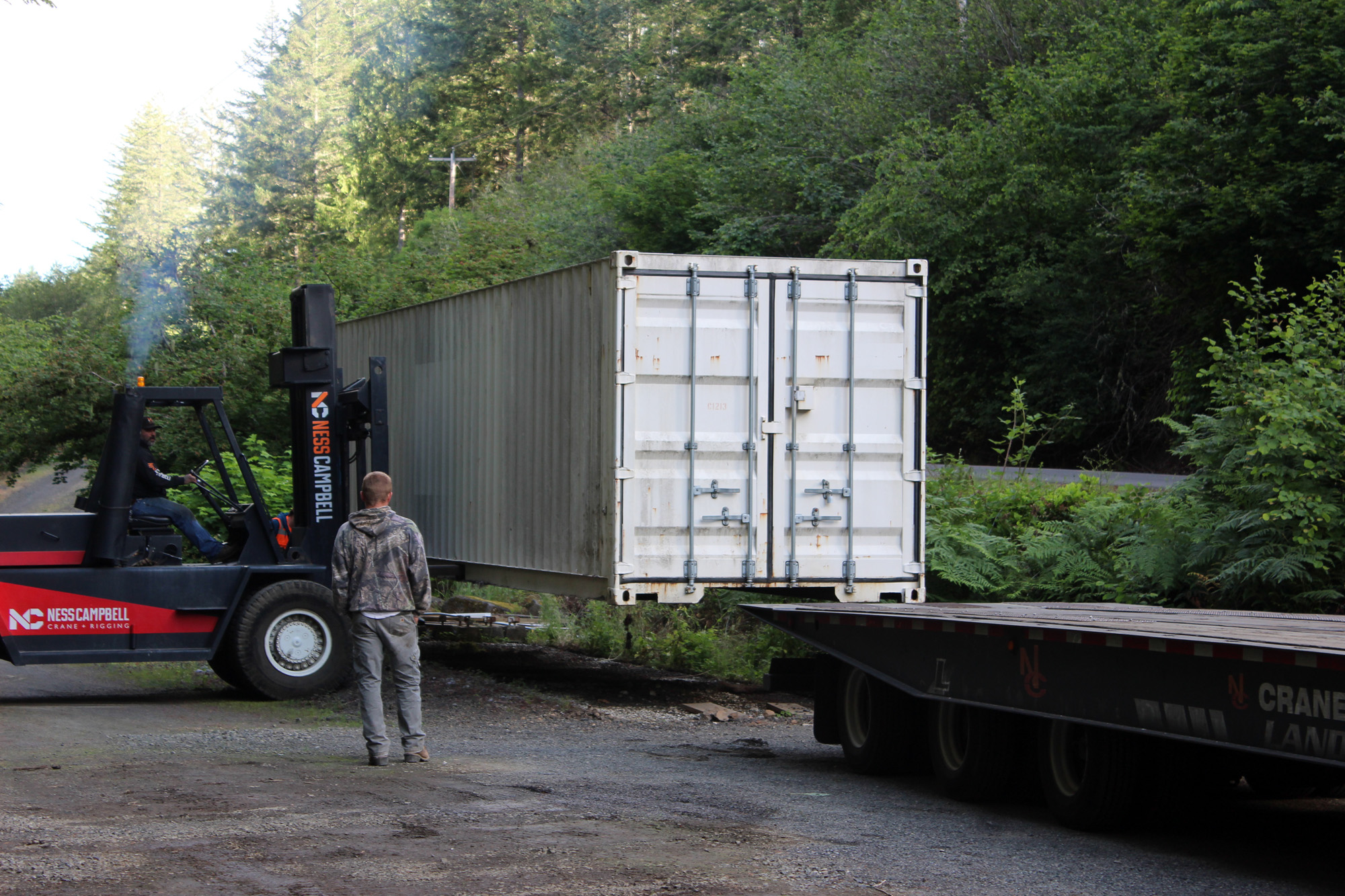 I wondered how he was going to turn it, but our co-worker had the idea to lift it and back the semi trailer under it which was brilliant