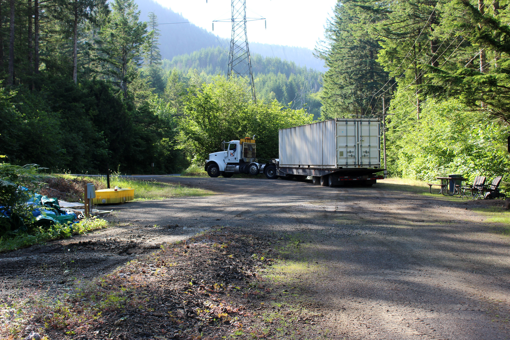 Finally it was done so we took it up to one of the fish ladder labs to fill it up. They have a huge hose and we filled the 300 gallon tank in less than a minute. The bad news was that it was lake water, and although it was pretty clean it does have lots of pine needles in it. That isn’t a big deal when you are using the hose to water plants, but whenever we tried to use a sprayer it got clogged up pretty quick. Still we muddled through and Lee and I sprayed down the toilets at Faraday, then I took the trailer all by myself up to Hole in The Wall and Moore Creek and did those bathrooms. Those sites are actually great because they are designed for boat trailers, and I had no difficulty pulling in and turning around. We didn’t do Lower Launch (which probably needs it the most) because of the crowds, but Lee is going to tackle it on Monday.