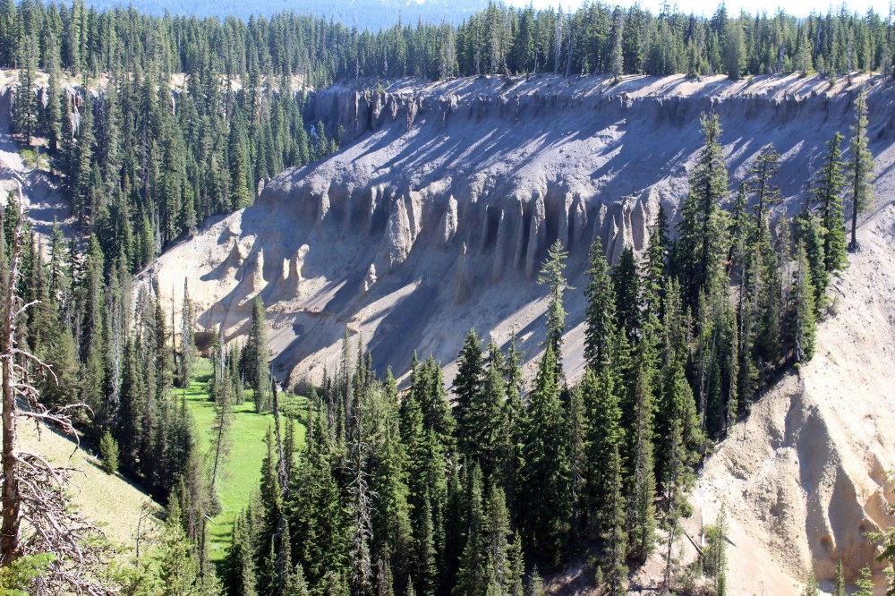 We wanted to get an early start, always recommended for any National Park, so started driving around 9am. The drive into the lake was pretty and there were several places to stop, but nothing really jumped out at me until we saw these cool rock formations and an intensely green meadow. The rock formations were caused by steam blowing up through the lava and it’s important to note that this entire area (including Crater Lake) were formed by the volcanic eruption of Mt. Masuma over 7,700 years ago.