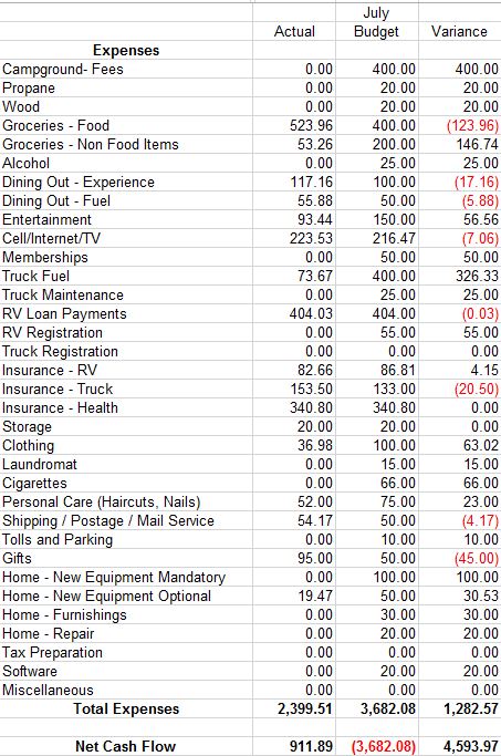 Hi Tracy, thoroughly enjoy following your budget! As a fellow fulltimer who also uses RV Dreams budget sheet I have a couple of questions for you. Dining out fuel, how do you separate that from fuel in general? Also, you budget you post shows expenses only, no income so is it same to “assume” you are keeping your heads above water each month? It definitely takes time to get into the budget groove of things!
